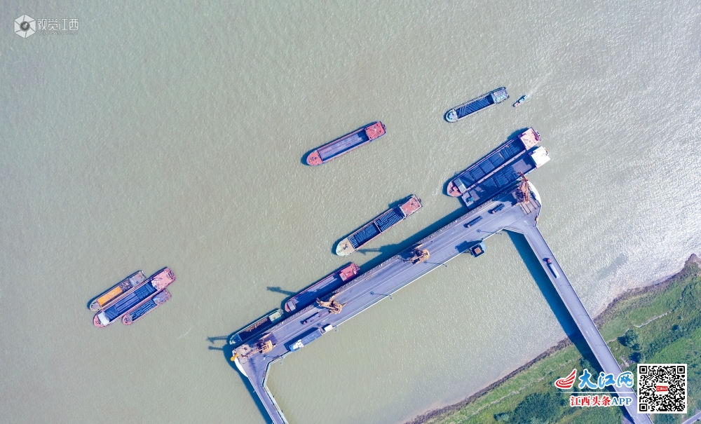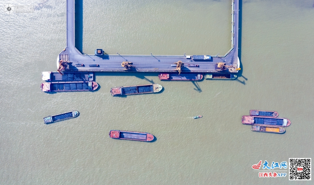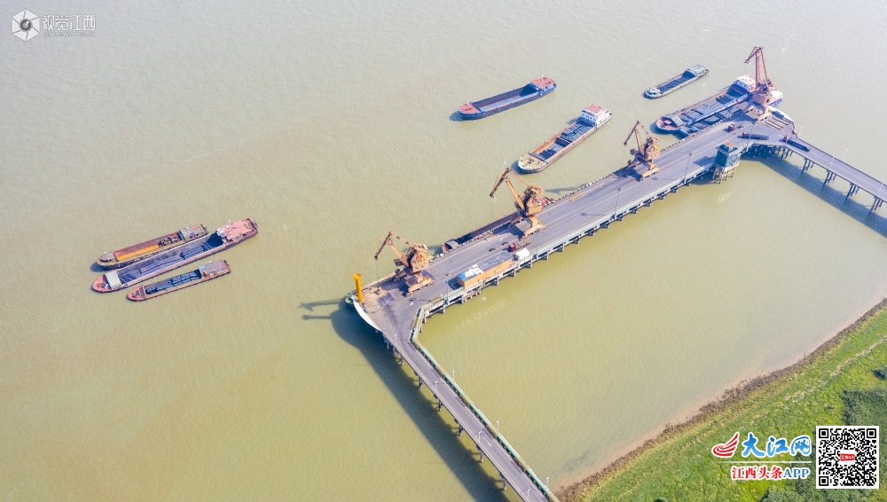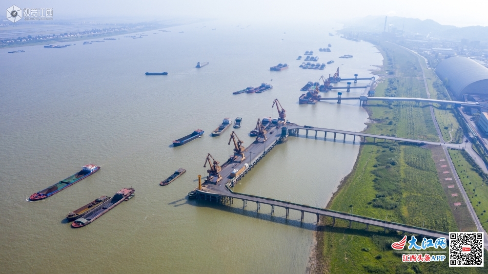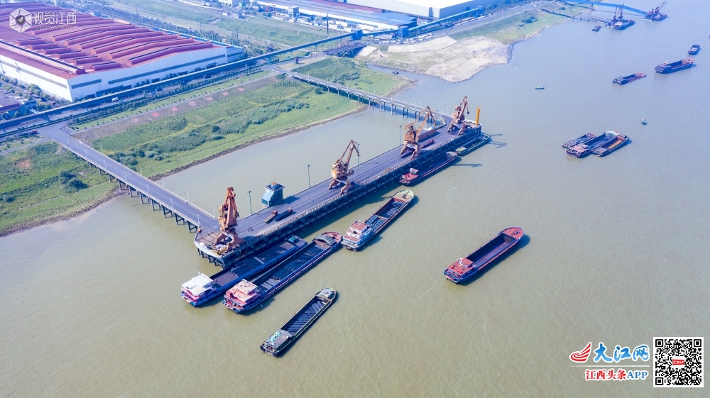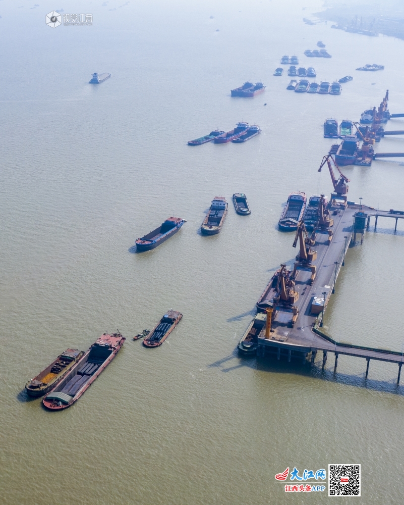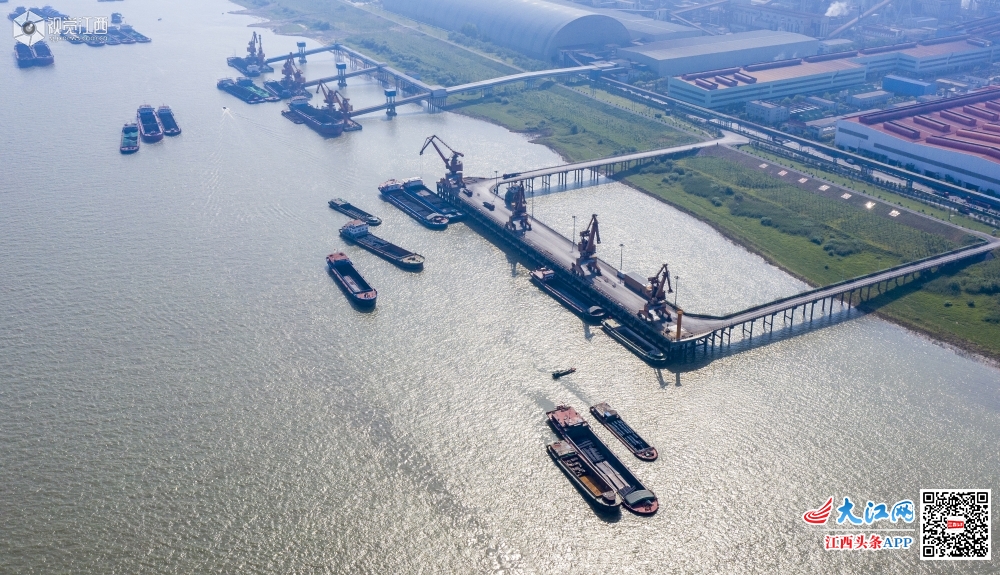 2020年4月28日,江西省湖口县方大九钢公司码头塔吊林立,铁臂挥舞,港口经济有序运行。