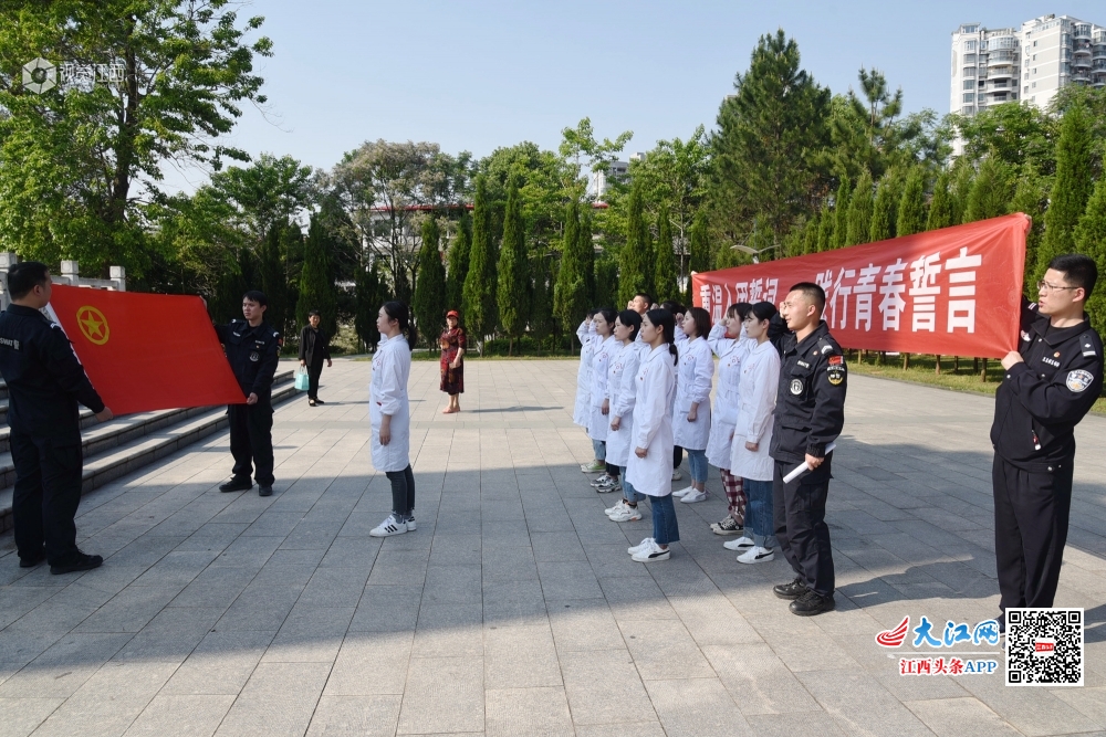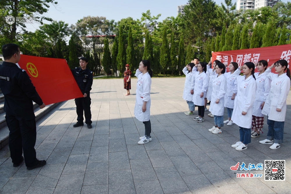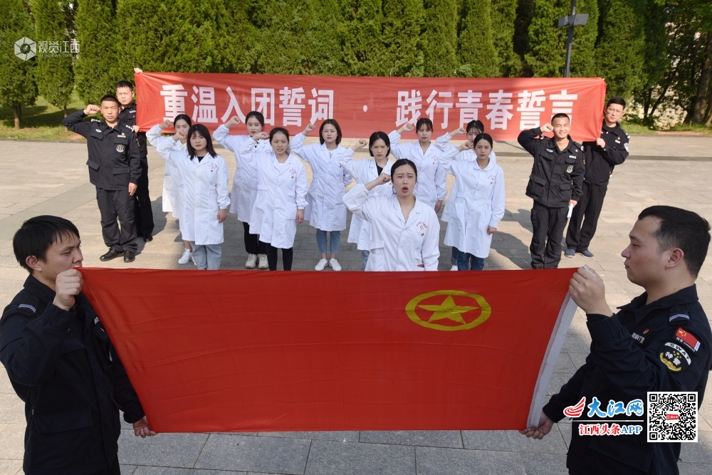 “五四”青年节前夕,共青团江西省南丰县委员会组织公安民警、医院护士中的青年团员来到该县革命烈士纪念碑前重温入团誓词,传承发扬“五四”精神,培养青年团员爱国奉献、忠诚为民的精神品质。