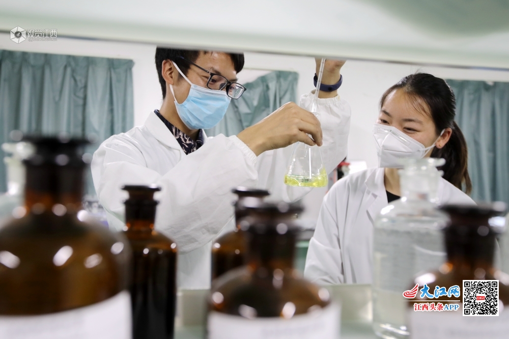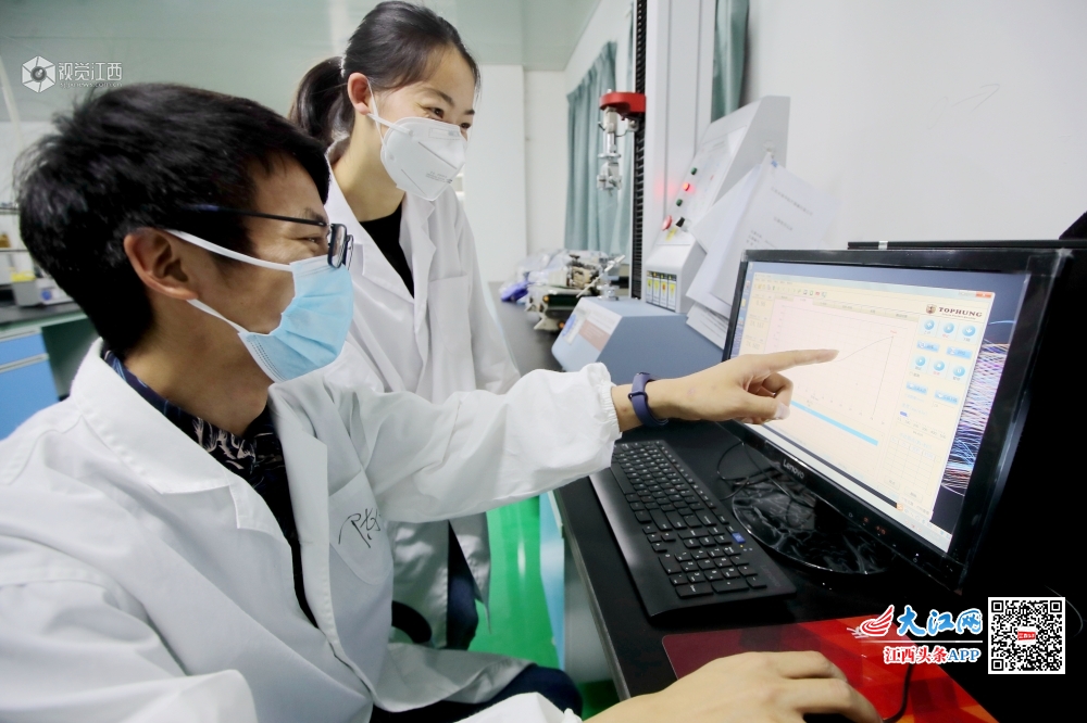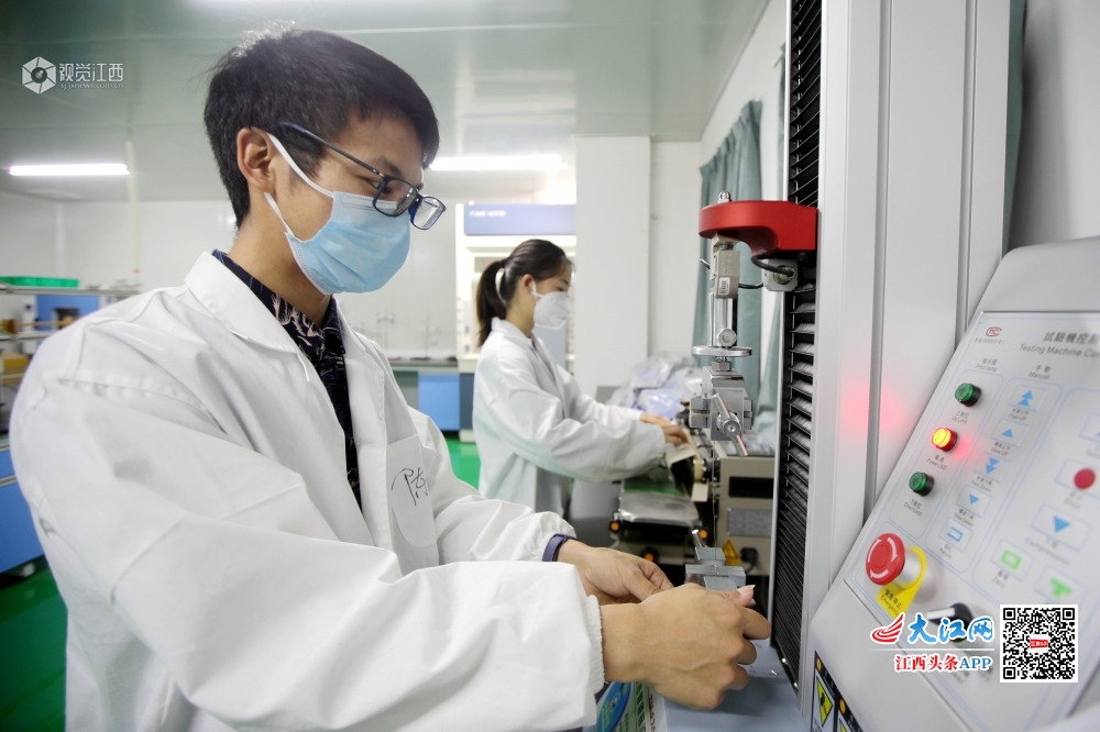 4月28日,在江西省峡江县卓瑞华医疗器械有限公司,科研人员在做内窥镜耗材研发实验。