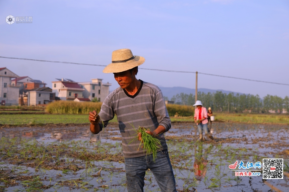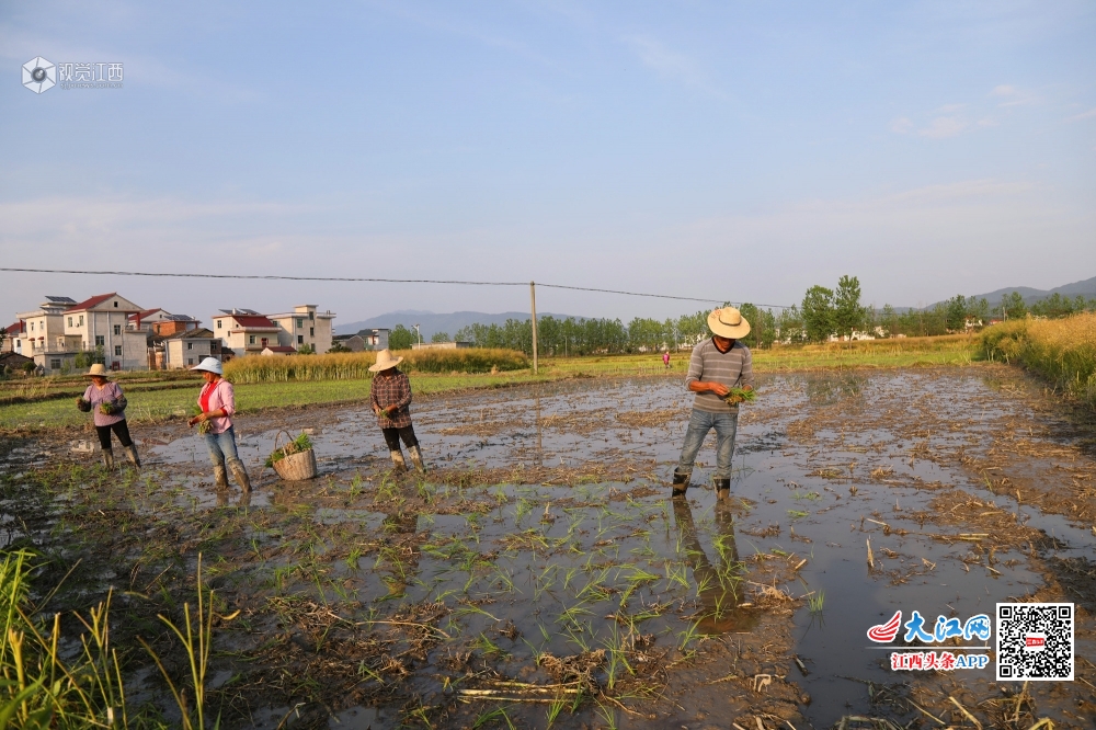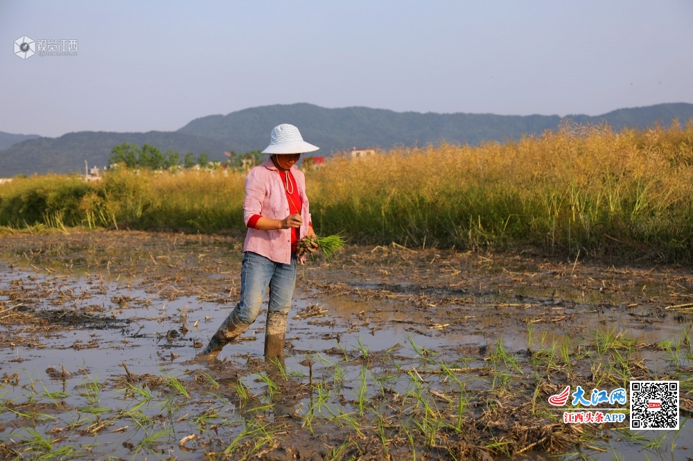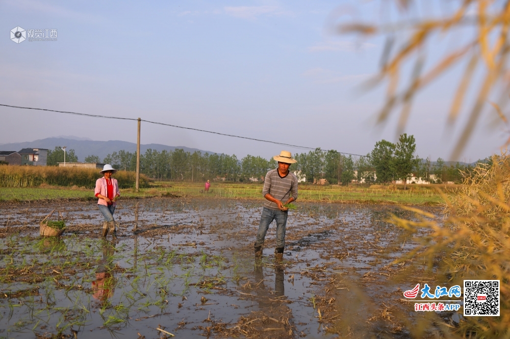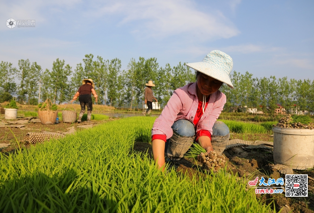 4月29日,在莲花县桃岭村,田间水汪汪,秧苗绿油油,贫困户谭海华和丈夫正忙着采秧苗、抛秧,播种新一年的希望。谭海华一家因病致贫2014年被评为贫困户,后来夫妻俩通过务工顺利脱了贫。为了稳定脱贫再致富,2018年,在扶贫干部的帮助下,谭海华找准了种植水稻致富的路子,从最初的20亩,到今年的300多亩,水稻种植面积扩大了10多倍,不但自己脱贫致富,还通过聘请帮工的形式带动5名村民增收。