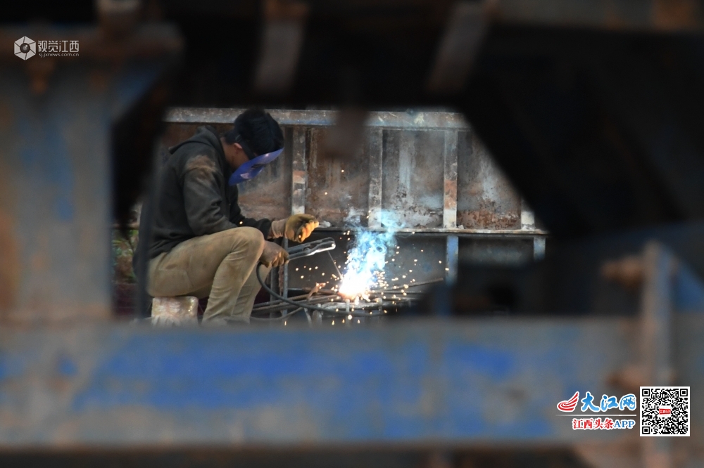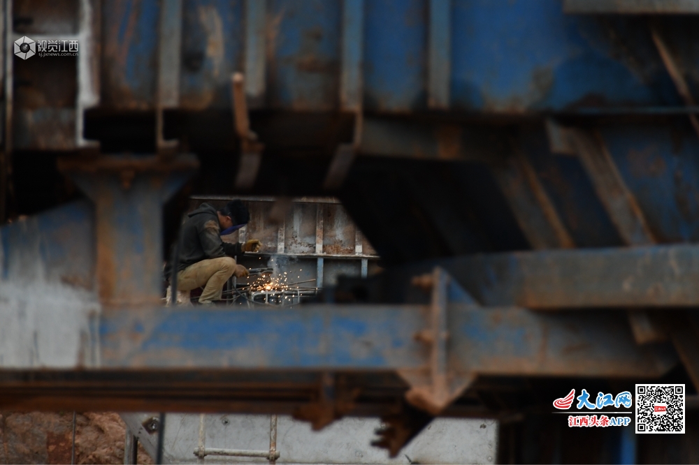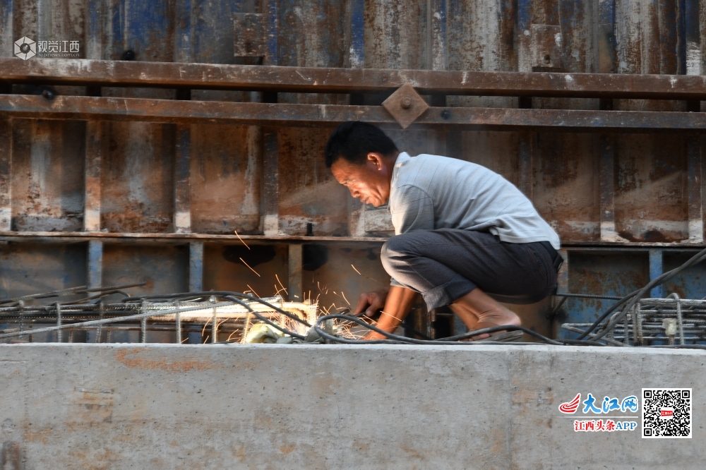 5月1日,工人在位于江西兴国县江背镇高寨村的兴泉铁路施工现场焊接作业。当日是“五一”国际劳动节,众多劳动者坚守在自己的工作岗位上,在劳动中度过节日。