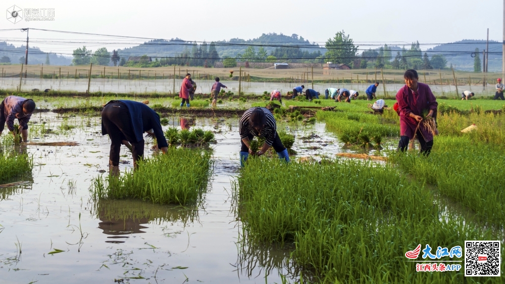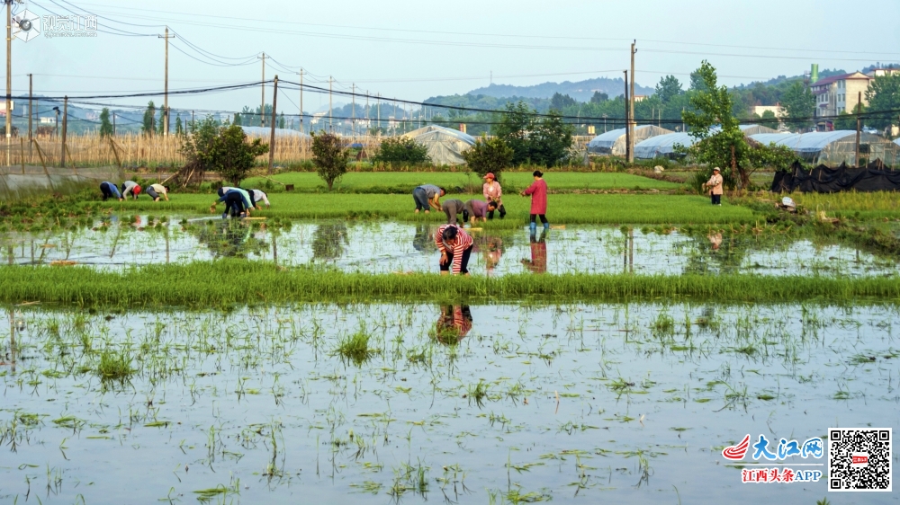 近日,天气晴好,江西省袁州区芦村镇五星村的田间地头呈现出一片热火朝天的劳动景象,村民正在忙于早稻栽插。