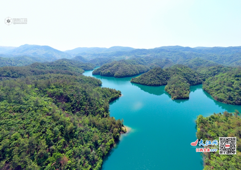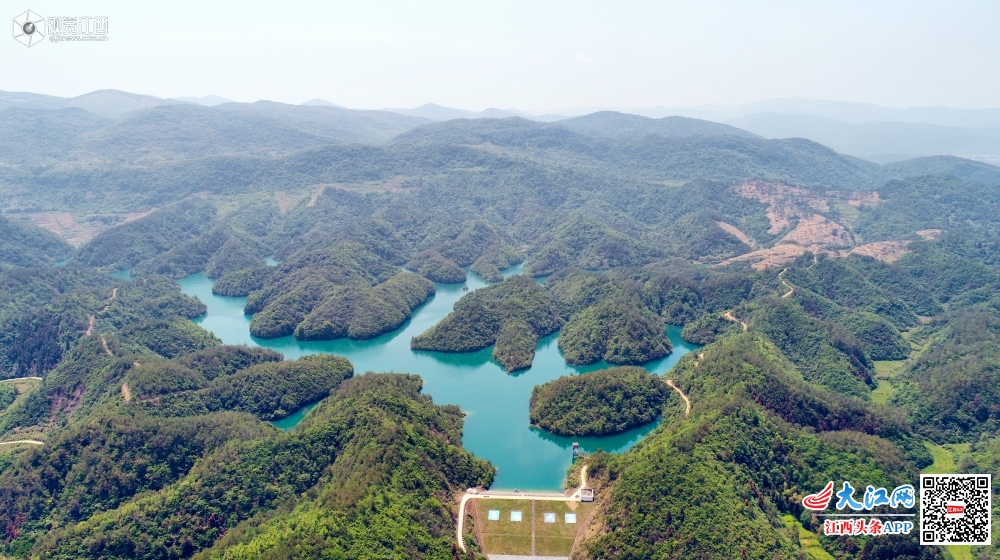航拍瑞昌东垅水库岛屿星罗棋布 湖水相映成画