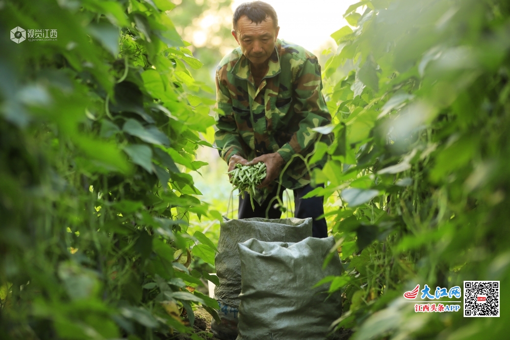 江西省吉安市泰和县澄江镇南门村蔬菜基地,一排排“绿瀑”间,菜农们正忙着采摘今年的第一批四季豆,夕阳下,构成了一幅夏日丰收图。立夏已至,时令蔬菜陆续成熟,菜农们抢抓农时、辛勤采收,满足市场需求,增加家庭收入。