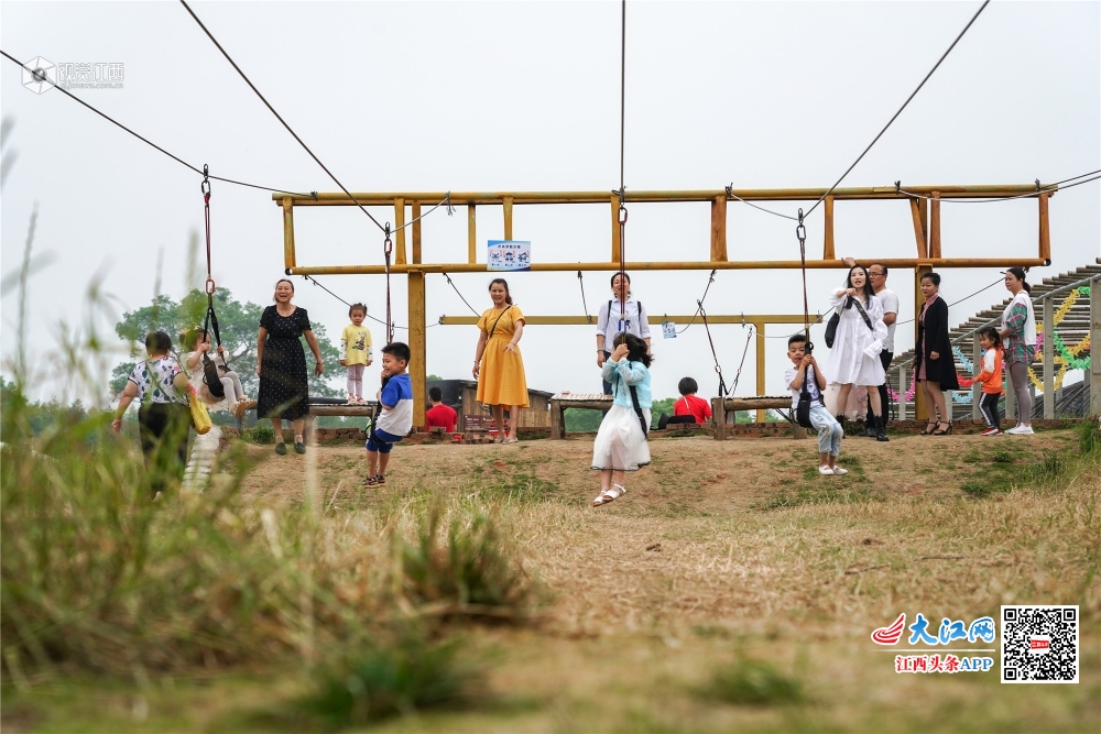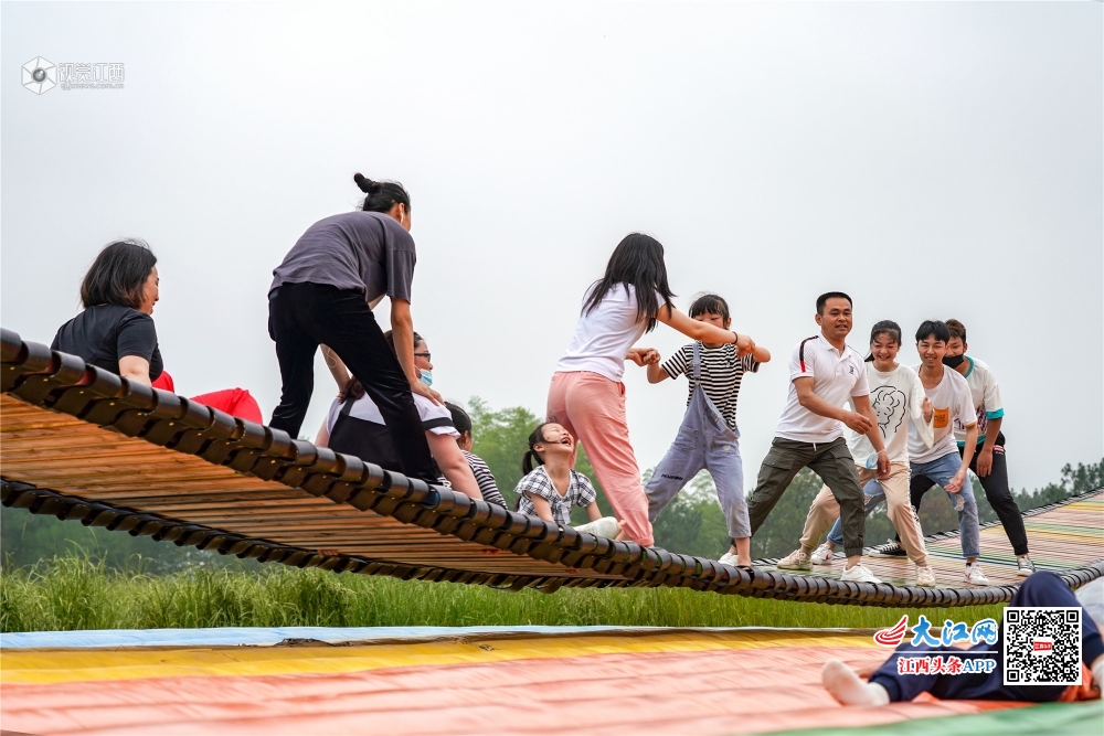 火热的五一假期后,江西新余乡村旅游持续升温。2020年5月6日,江西省新余市锦园生态景区客流依然红火,景区网红桥、蹦蹦云、滑索道等娱乐项目吸引大量游客前来游玩,颇受欢迎。