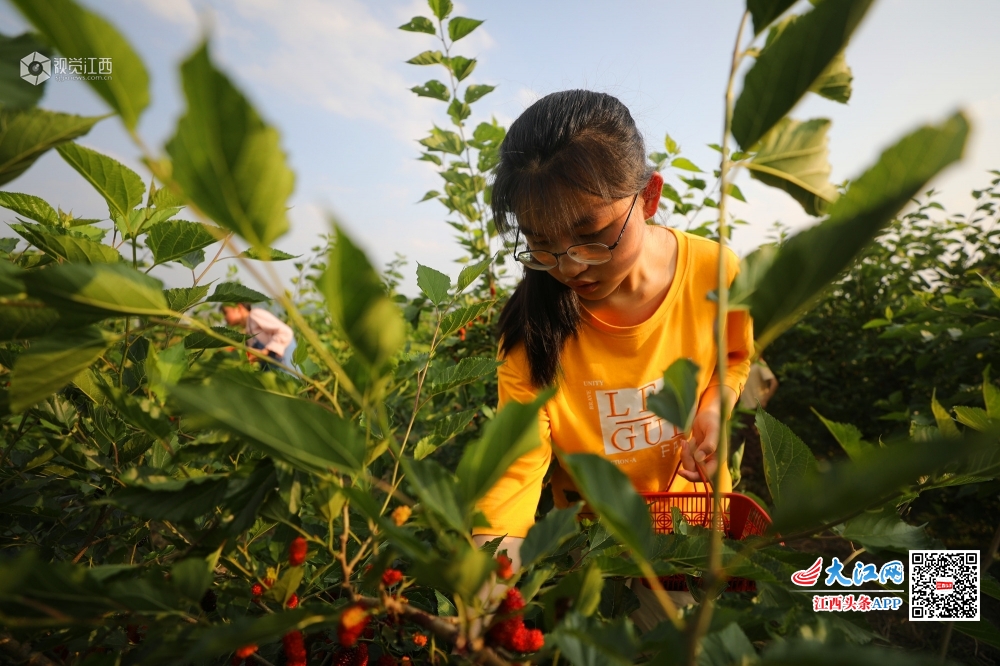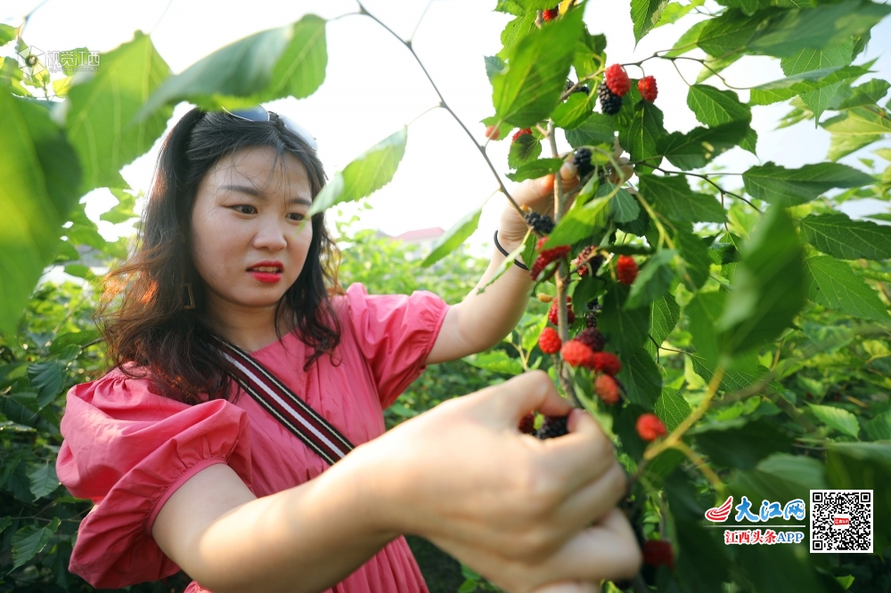 眼下,正是桑葚成熟上市的季节,5月7日,在江西省莲花县琴亭镇莲花村的桑葚采摘园内,乌黑发亮、甜甜的桑葚甚是惹眼,让人垂涎。不少市民在桑树间穿梭,体验采摘乐趣,又香又甜的桑葚乐了游客富了农户。