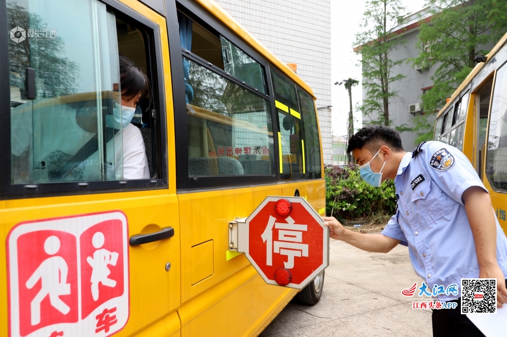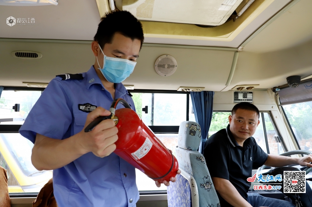 2020年5月9日,江西省九江市湖口县公安局交管大队均桥中队交警正在给辖区内幼儿园的校车车况、安全设备等进行全面检查。连日来,湖口县交管部门加强对当地校车进行严格“体检”,召开校车驾驶员交通安全培训会,签订安全责任书,筑牢道路交通安全防线,为师生复学安全出行护航。