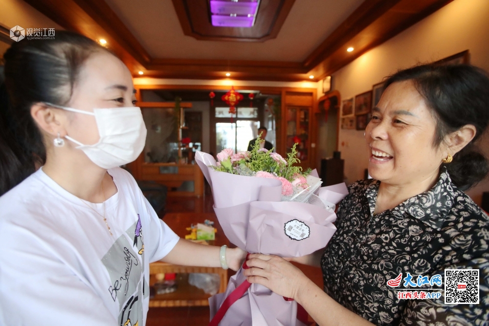 5月10日是母亲节,江西省峡江县不少儿女通过给母亲送花的形式,表达对母亲的节日祝福和感恩之情。