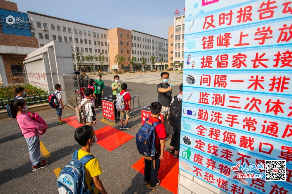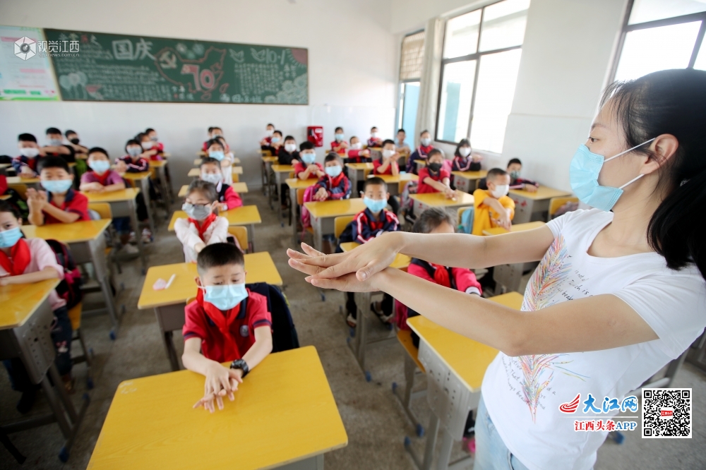 2020年5月13日,江西省吉安市峡江县初一初二年级和小学四至六年级的学生有序返校开学复课。