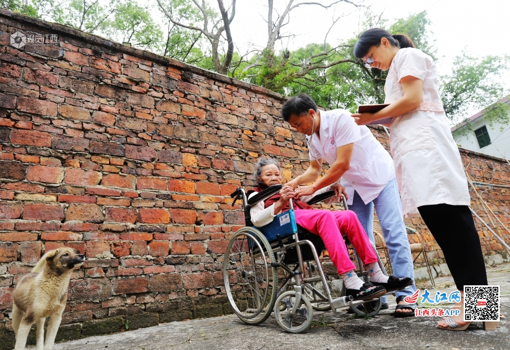 5月15日,江西省安福县平都卫生院家庭医生在给太源村残疾人罗晚云体检。今年5月17日是第三十次全国助残日,今年助残日主题为“助残脱贫 决胜小康”。