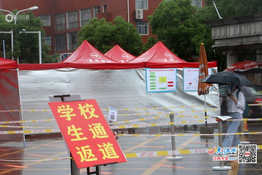 当日上午,江西省宜春市中心城区暴雨倾盆。在教职工、交警等多方组织下,学院学生有序回到寝室,重启校园生活。