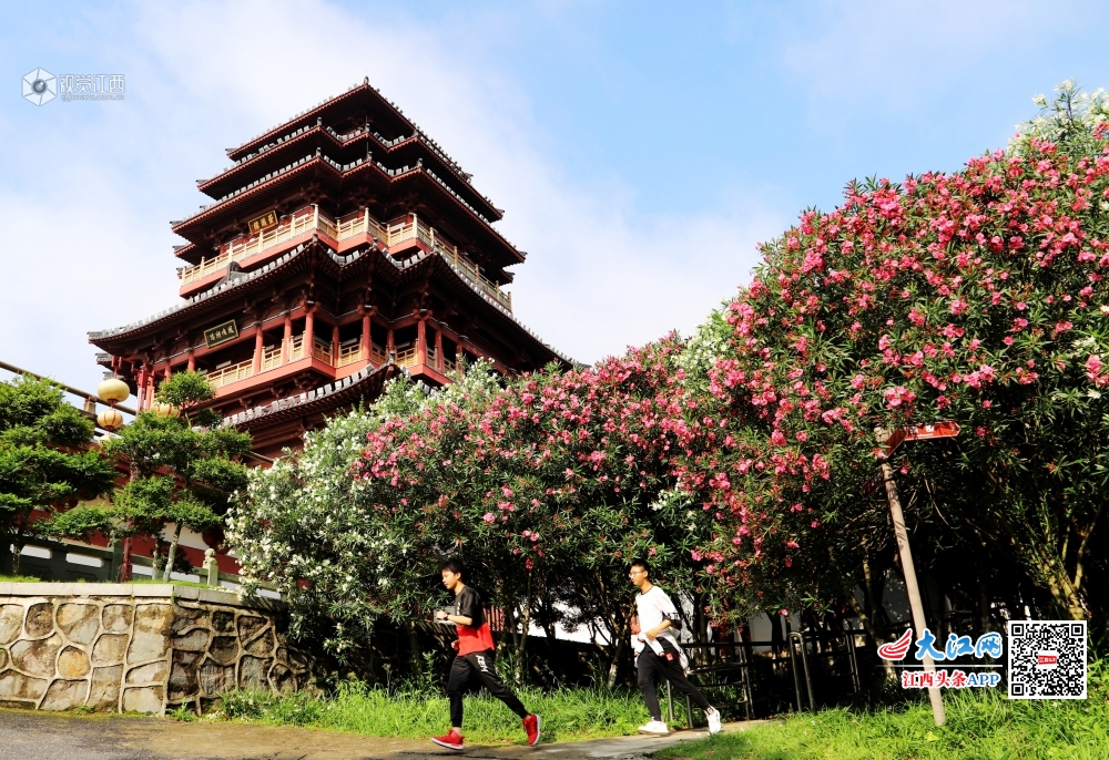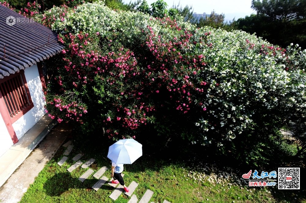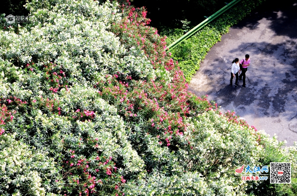 随着气温日益升高,蒙冈岭社区的夹竹桃鲜花盛开,一簇簇红白相间的花朵缀满枝头,赏心悦目,把社区打扮得分外美丽。近年来,安福县大力推进森林城市建设,县城绿化覆盖率达43.7%,人均公共绿地面积达17.8平方米。