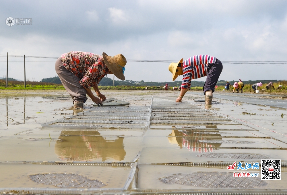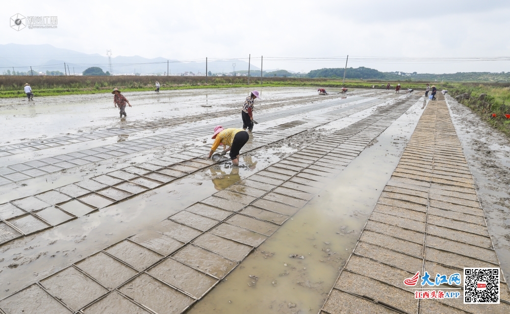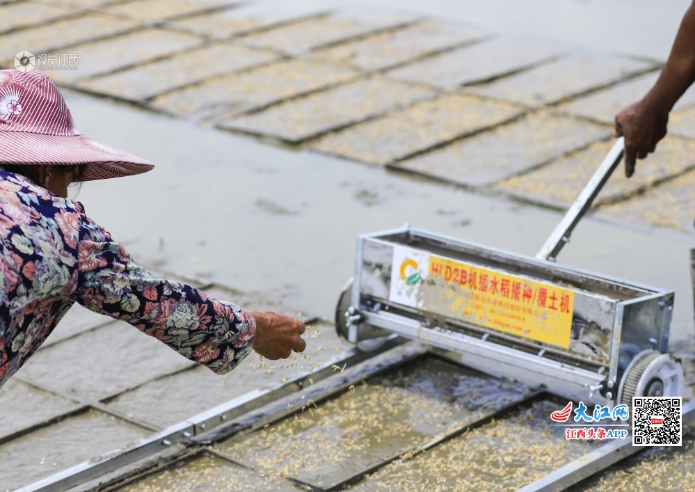5月17日,江西省湖口县武山镇武前村种粮大户王章明正在稻田里培育中稻秧。眼下,正值农种的有利时节,全县农民抢抓农时,有序开展农事作业,确保粮食丰产增收,稳住“米袋子”。
