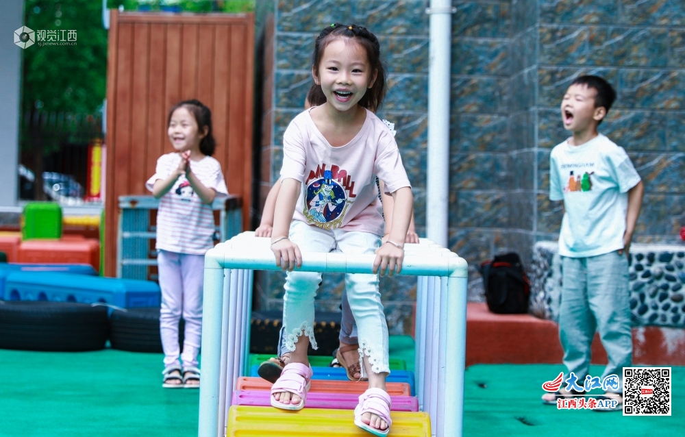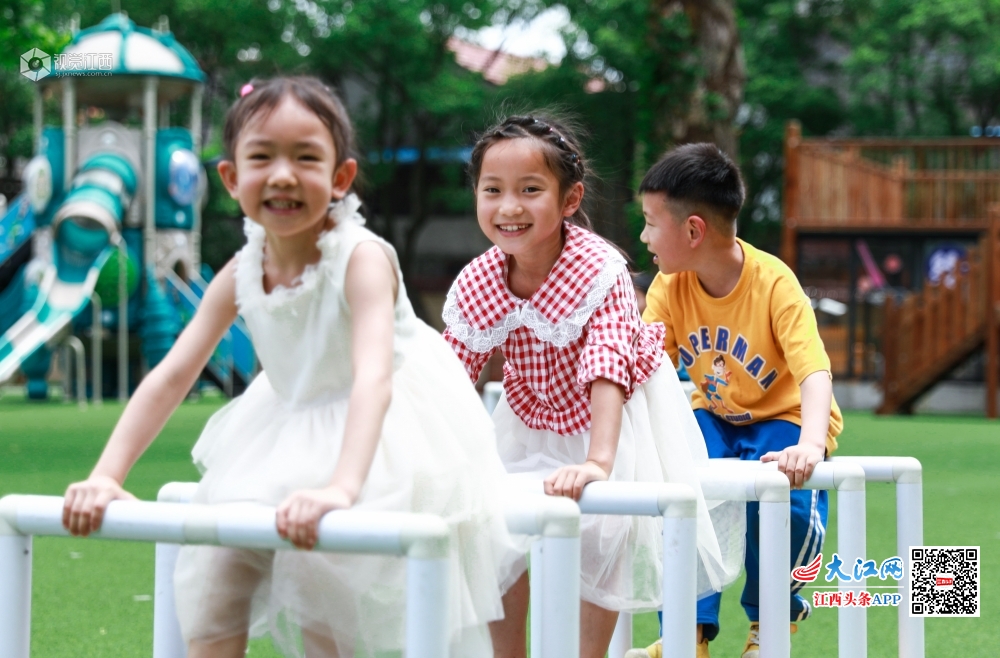 2020年5月18日,江西省吉安市泰和县小学一、二、三年级学生和幼儿园的孩子们有序返校返园,开启快乐学习生活。该县直属机关幼儿园在做好防护措施的基础上,利用课间、体育课开展趣味游戏、阳光体育活动,增强孩子们的身体素质。