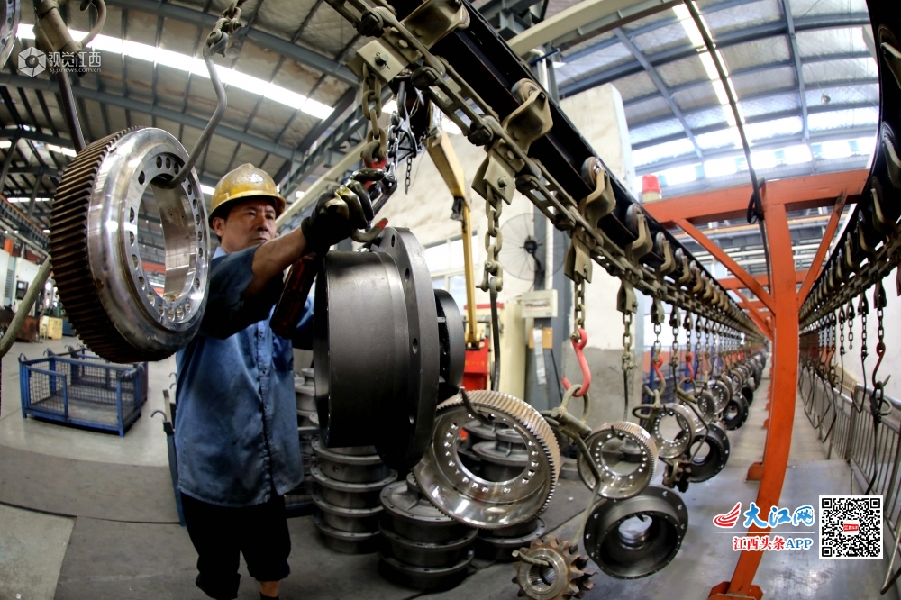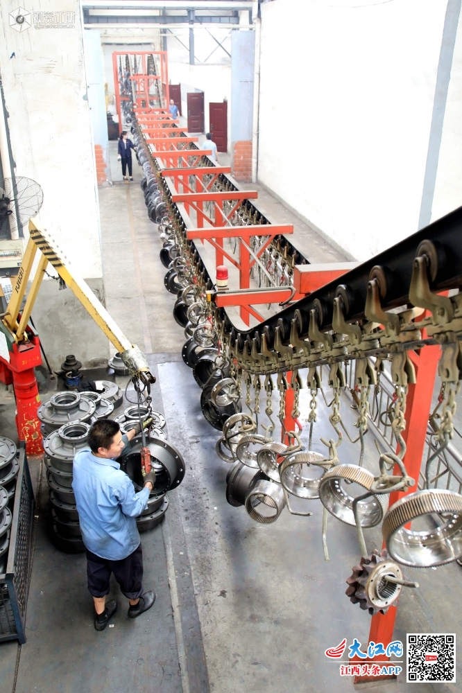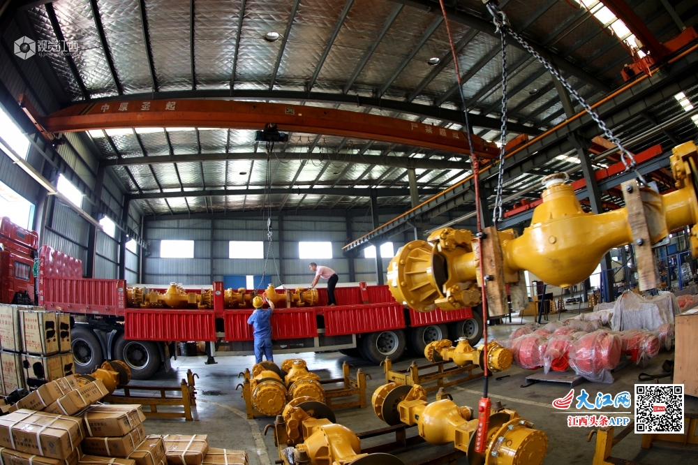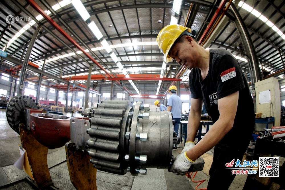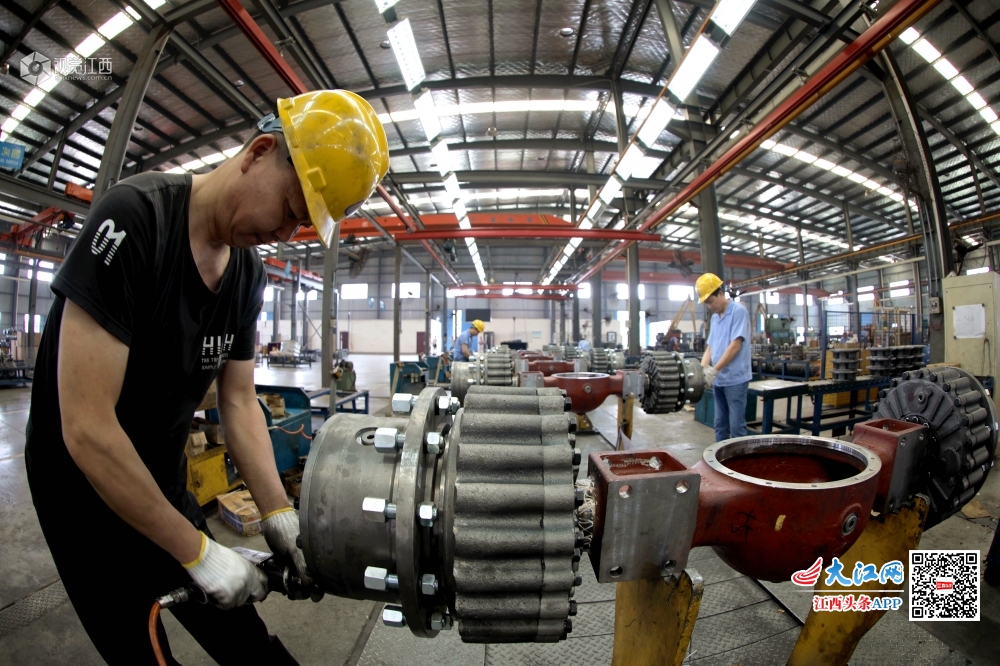 5月28日,江西省分宜县驱动桥有限公司总装车间员工正在装配线上加紧组装井下运输车驱动桥。