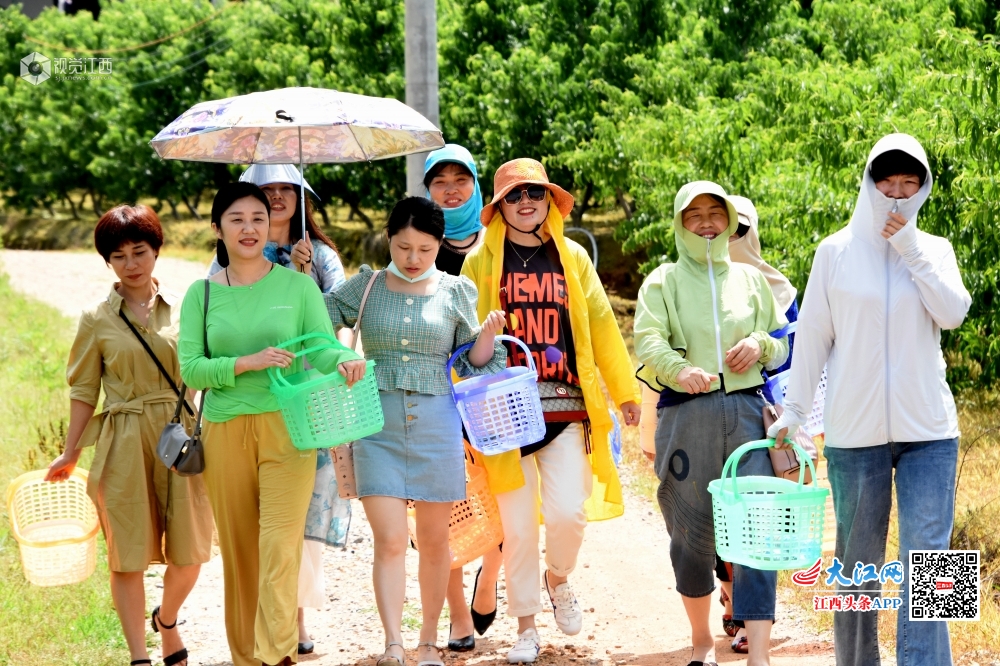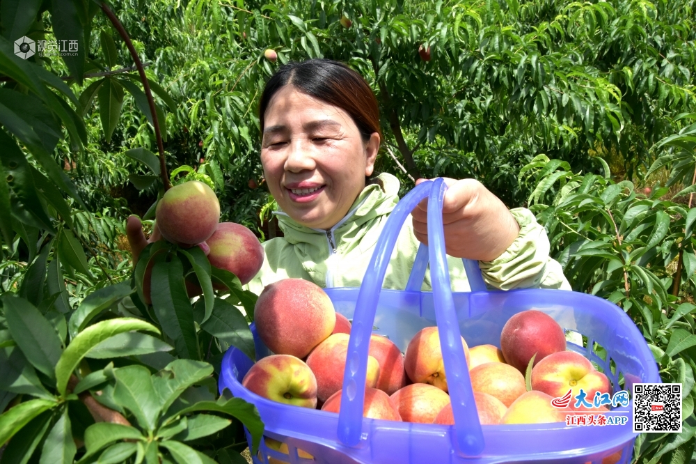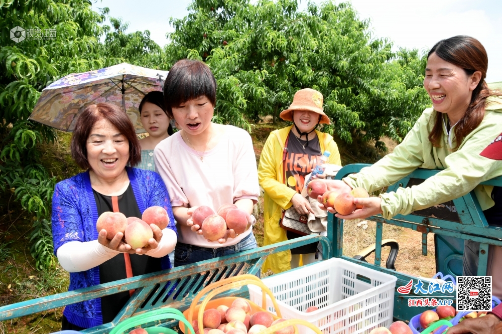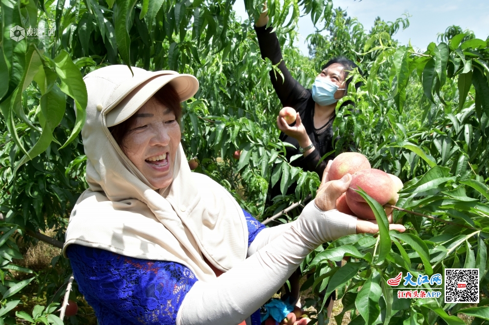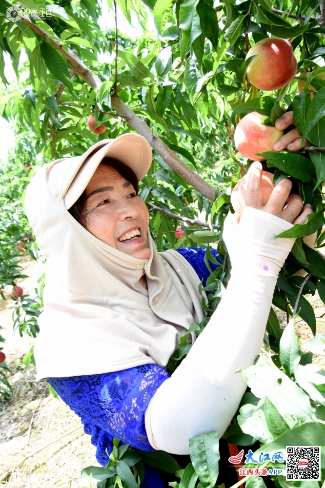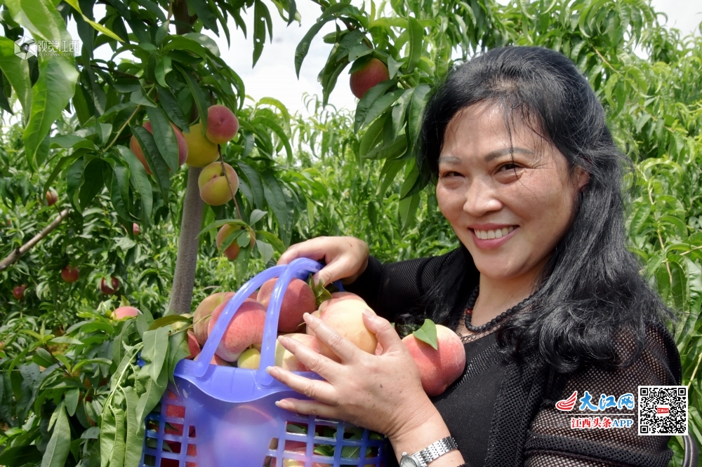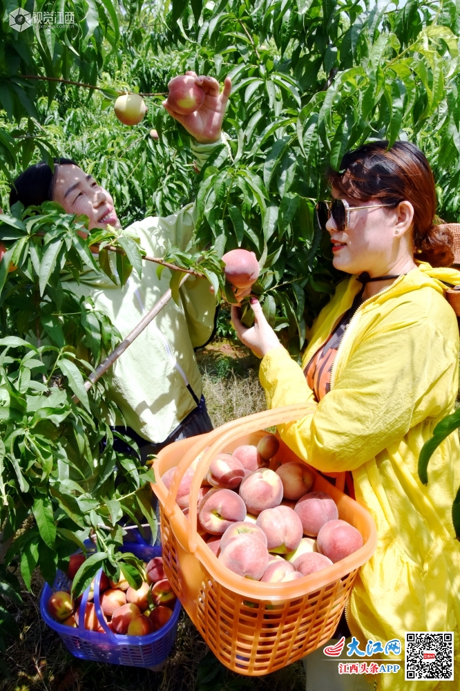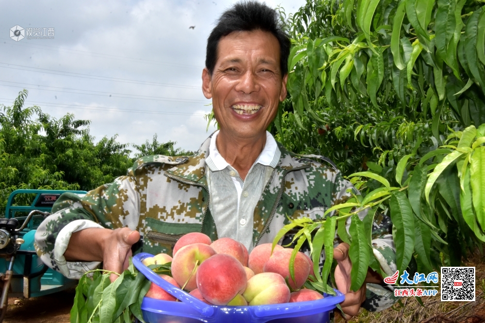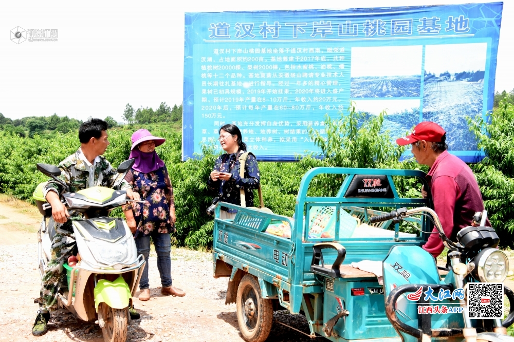 2020年5月31日,江西省鄱阳县鄱阳镇道叉村下岸山产业 扶贫基地水蜜桃进入采摘期。据悉,该产业基地占地200亩,种植各类水蜜桃、油桃、蟠桃、梨树等十二个品种 22000棵。今年预计产量达60—80万斤,年收入150万元。