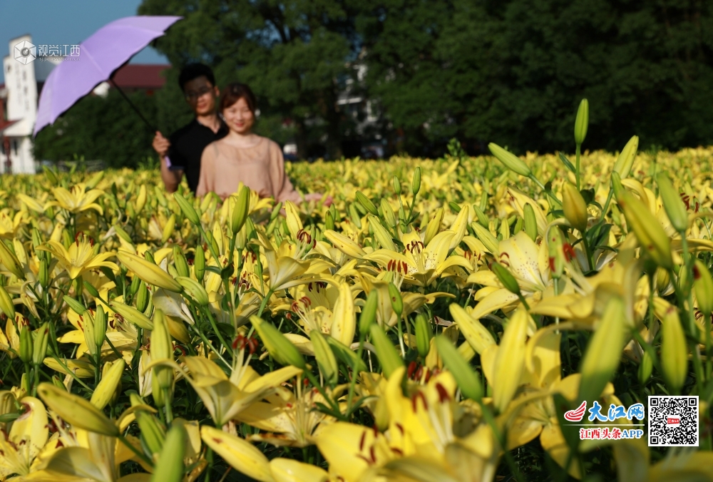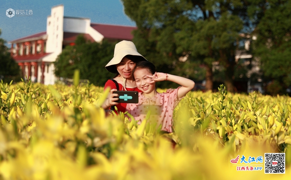 初夏时节,江西省吉安市泰和县苏溪镇模山村百合花竞相绽放,成片花海吸引游客前来赏花游玩。