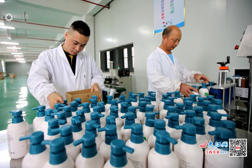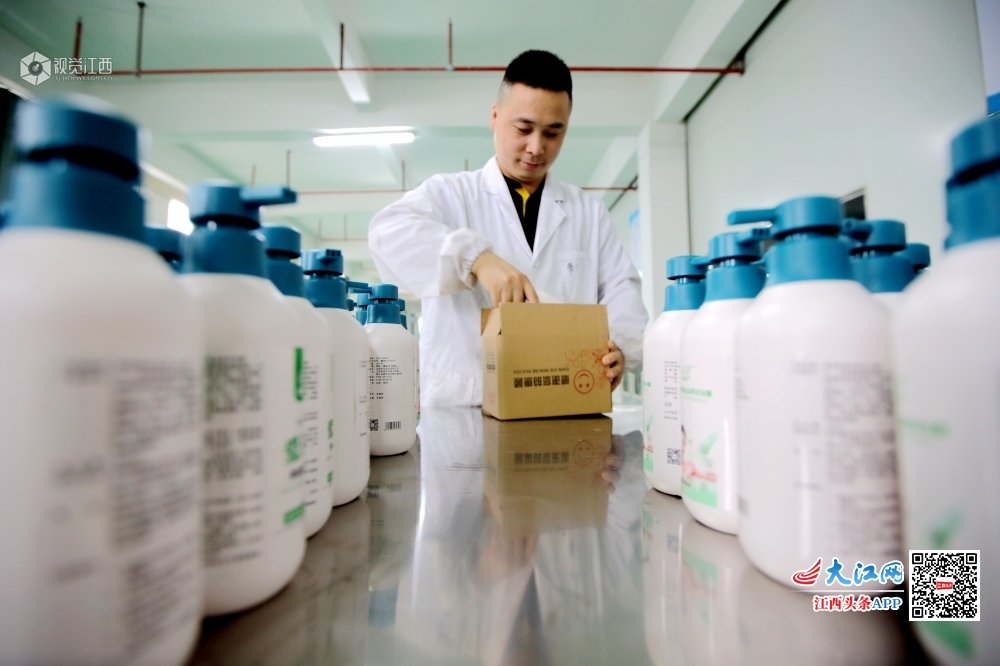 2020年6月3日,在江西省吉安市峡江县工业园区一家企业生产车间,通过技能培训后的退役军人刘勇在包装产品。