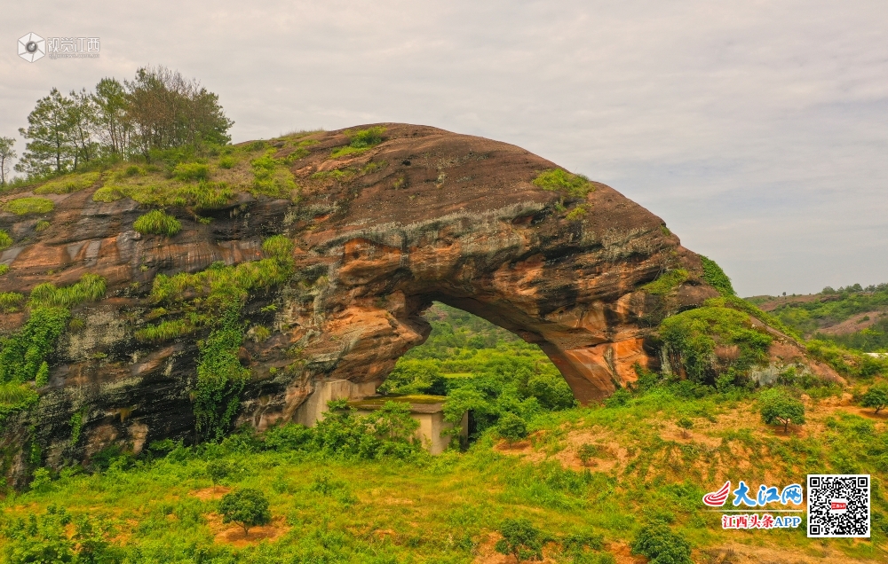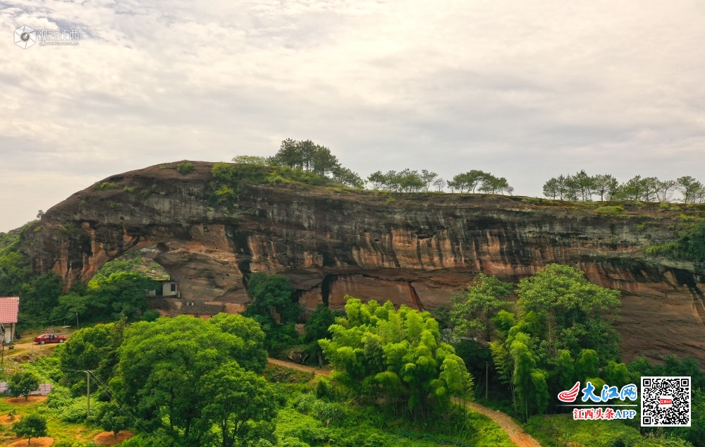 2020年5月31日,航拍江西省上饶市铅山县新滩乡“象鼻山”山体。铅山县新滩乡境内属于丹霞地貌,境内各种奇形怪状的山体不少,“象鼻山”位于新滩乡占村村境内。该象鼻山也叫象山崖,象鼻山高约30米,长约500米左右,从空中看去,犹如大象在山间奔驰;近处看去,大象鼻子、大象眼睛、大象嘴巴看得一清二楚,栩栩如生。