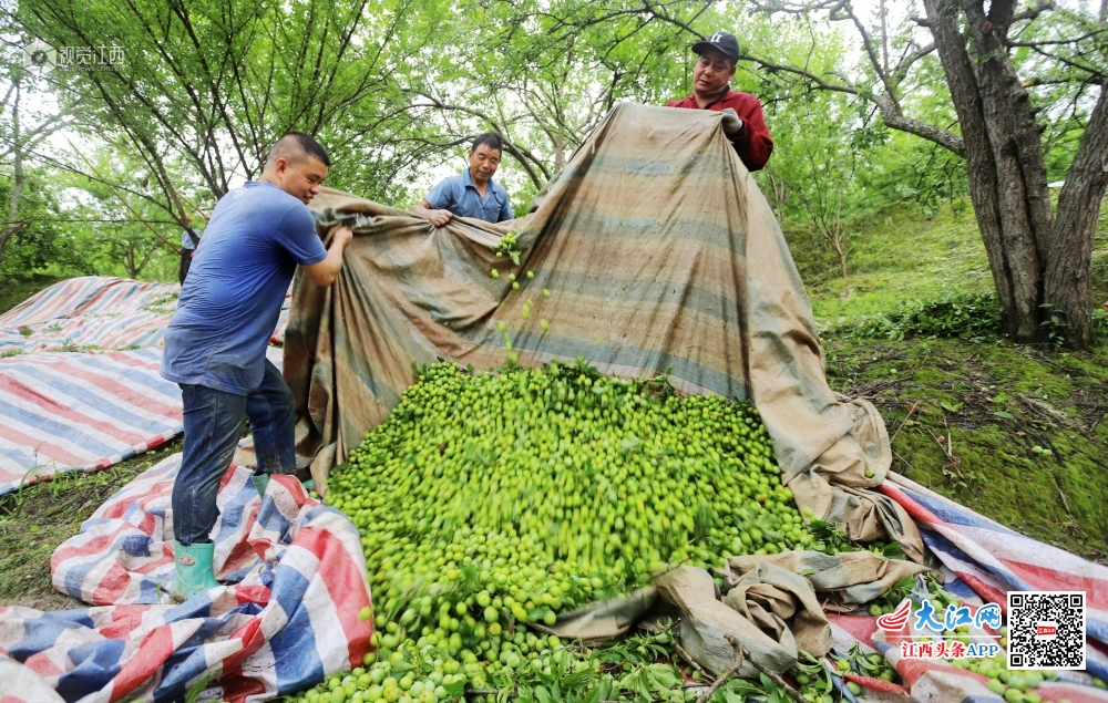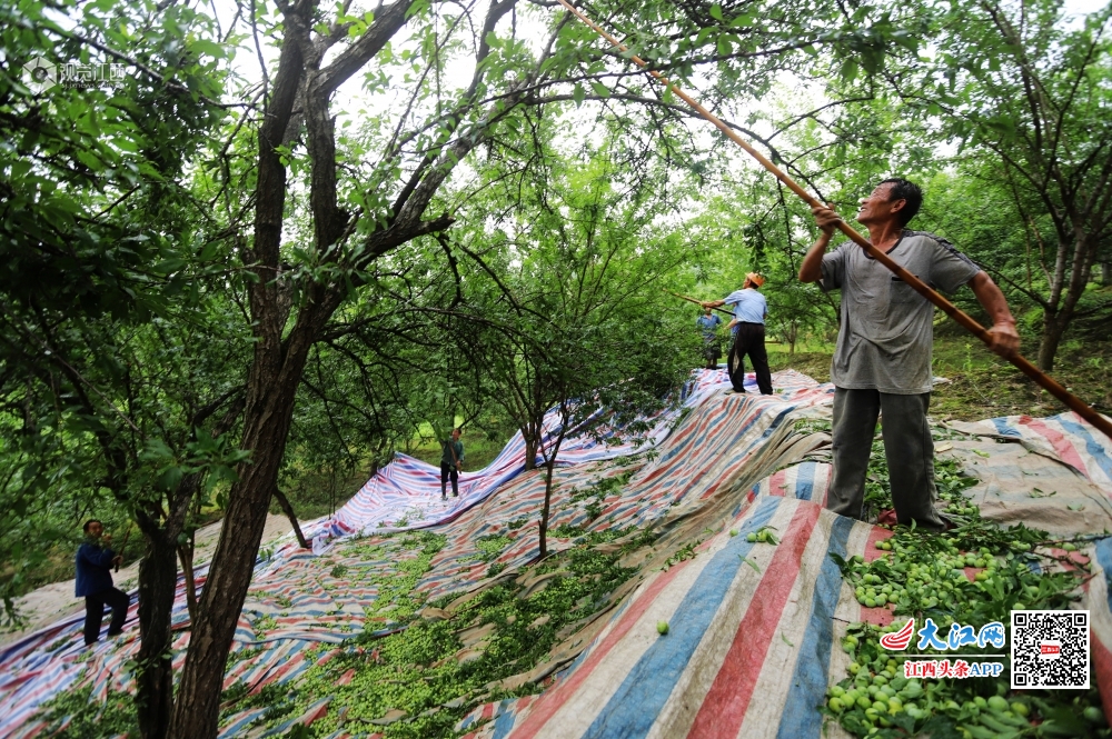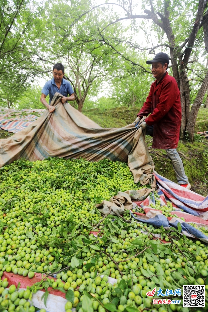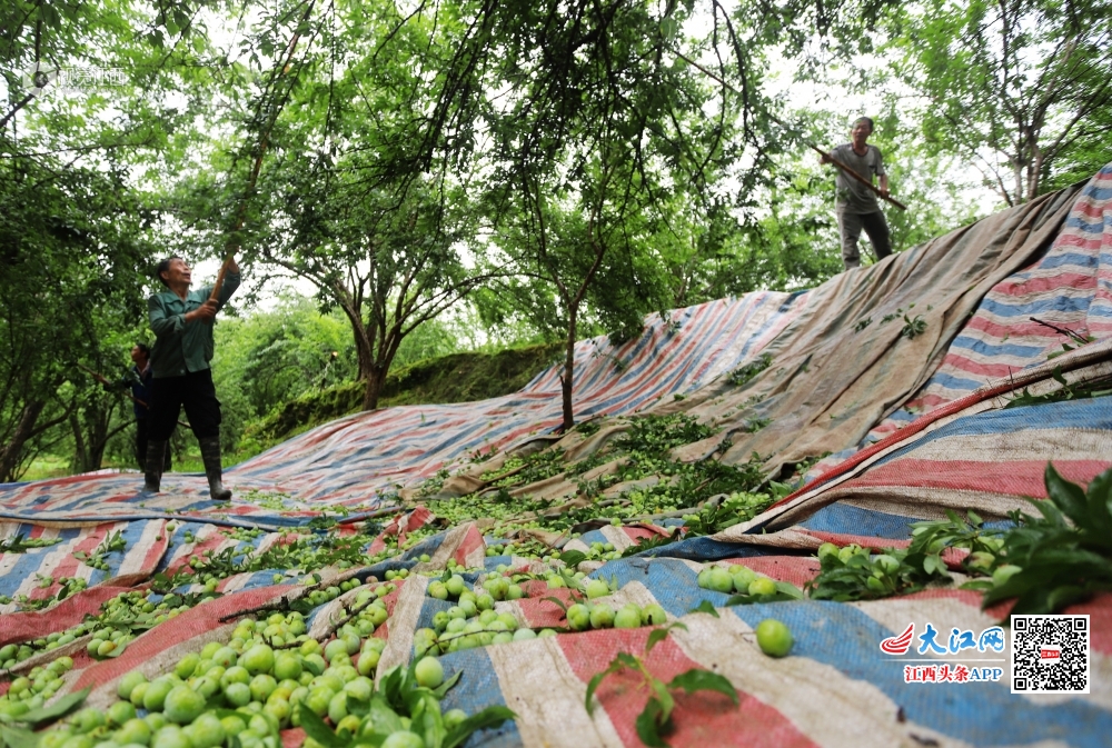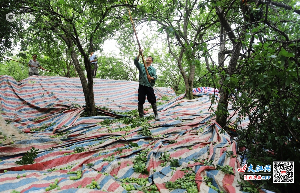 6月7日,江西省安福县严田镇江口村李子专业合作社社员在采摘李子。江口村李子专业合作社有1300余亩李子树,每年产李子500余万斤,全部统一销往广东果脯厂家进行加工。