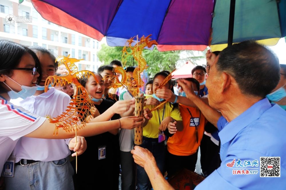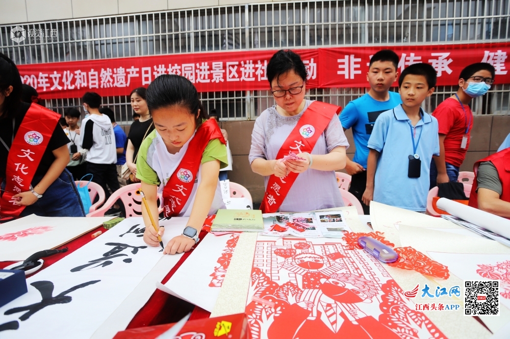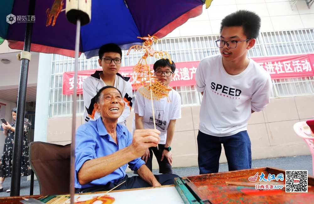 6月9日,江西省安福县安福中学学生在观看非遗表演。今年文化与自然遗产日来临之际,安福县文化馆围绕“非遗传承、健康生活”主题组织中秋烧塔、表嫂茶、剪纸、糖人等64个县级以上非遗项目进校园、进景区、进社区宣传展演,让人民群众感受非遗的特殊艺术魅力,助力人民群众的美好生活。