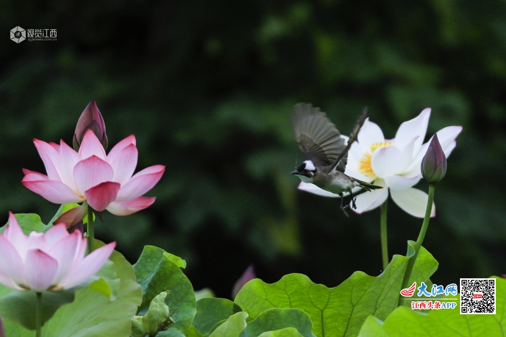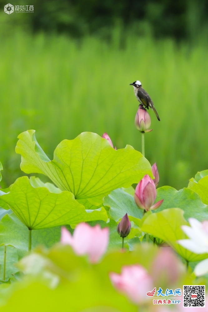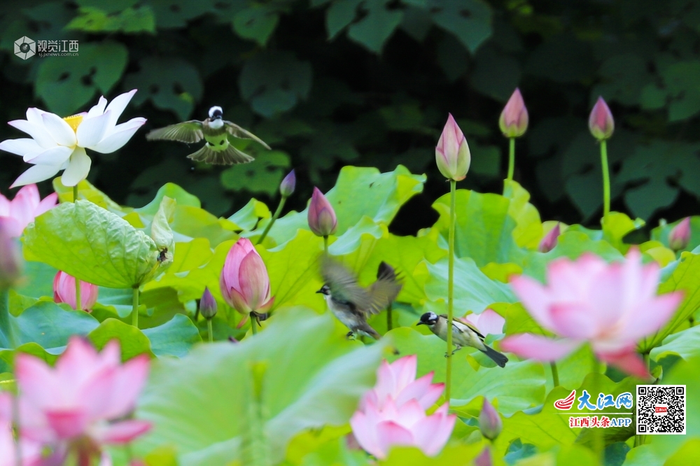 2020年6月9日,江西省九江市湖口县城郊一处湿地成片的荷花竞相盛开,成群的小鸟在此停留小憩,飞翔嬉戏,与荷花媲美,构成了夏日一道亮丽的风景线。近年来,当地坚持生态优先、绿色发展理念,持续加强生态修复治理,切实巩固扩大生态文明建设成果,生态环境得到有力保护,让天更蓝、水更清、山更绿、生态更和谐。