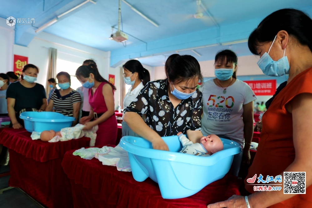 6月9日,学员们在兴国县一家职业培训机构参加家政(育婴员)培训。受疫情影响,兴国县人社部门创新举措,以市场需求为导向,开发项目,精心搭建平台,聘请专业老师,采取“线上+线下”、“理论学习+实际操作”相结合的方式,对有培训需求的农村转移劳动力、城镇下岗失业以及外出务工返乡人员开展实用技能培训,促进他们实现就业创业增收。今年以来,该县共举办月嫂、中式烹饪、创业培训等各类就业技能培训18期500余人,其中贫困户340人。