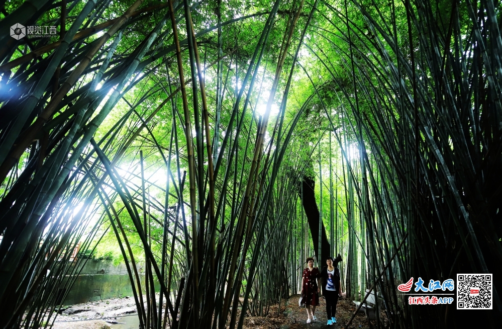 6月15日,游人在安福县严田镇岩头村“竹廊”赏竹纳凉。岩头村地处赣江支流泸水河边,村民长年在河边种植凤尾竹、毛竹、香樟等,以固定河堤,减少洪涝灾害。竹子沿河生长,久而久之,郁闭成林,连成一条蜿蜒数里的竹子长廊。近年来,该村利用新农村建设资金对“竹廊”加以整修,增添休憩、健身设施,使“竹廊”成了一条当地群众的共享绿道。仲夏时节,人们走进“竹廊”深处,纳凉赏竹,但闻鸟唱蝉鸣,更觉清静幽雅,别有洞天。