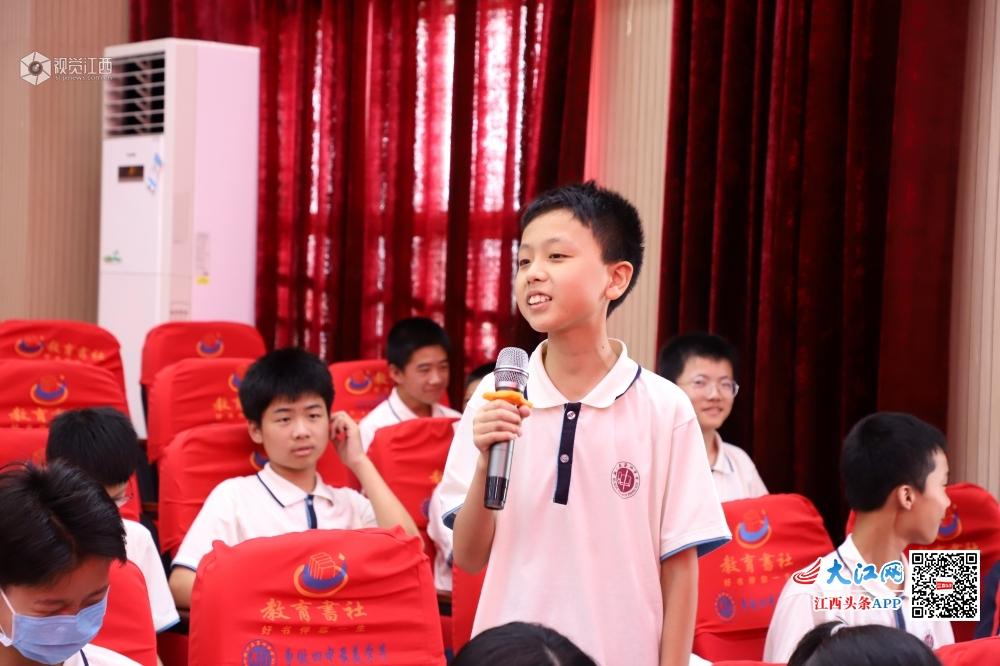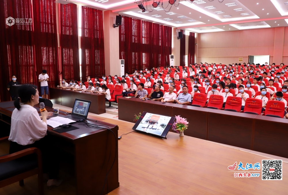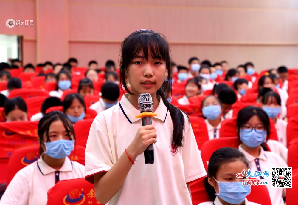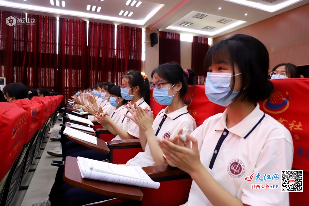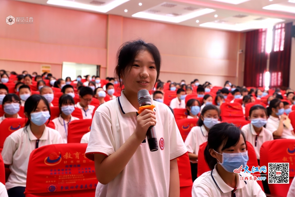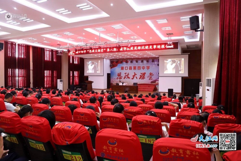 2020年6月16日,江西省九江市湖口县第四中学报告厅内,该县抗“疫”英雄、县人民医院支援湖北护士沈晓炎分享自己在武汉方舱医院的抗“疫”故事,给同学们上了一堂有温度、有感触、有深度的思政课,激励同学们把浓浓的爱国情怀厚植于心,努力争做新时代好少年。