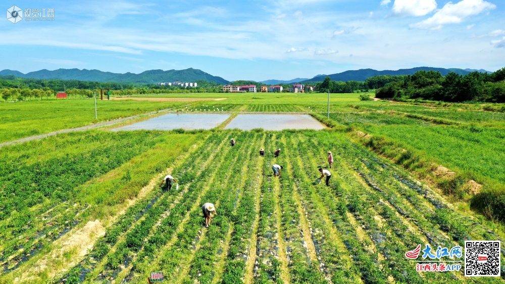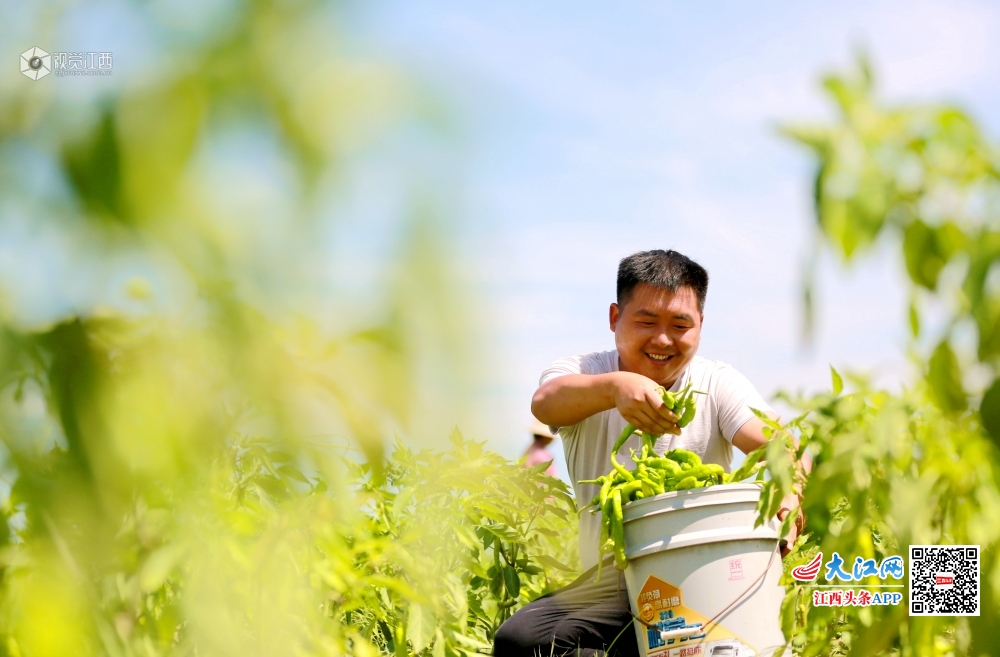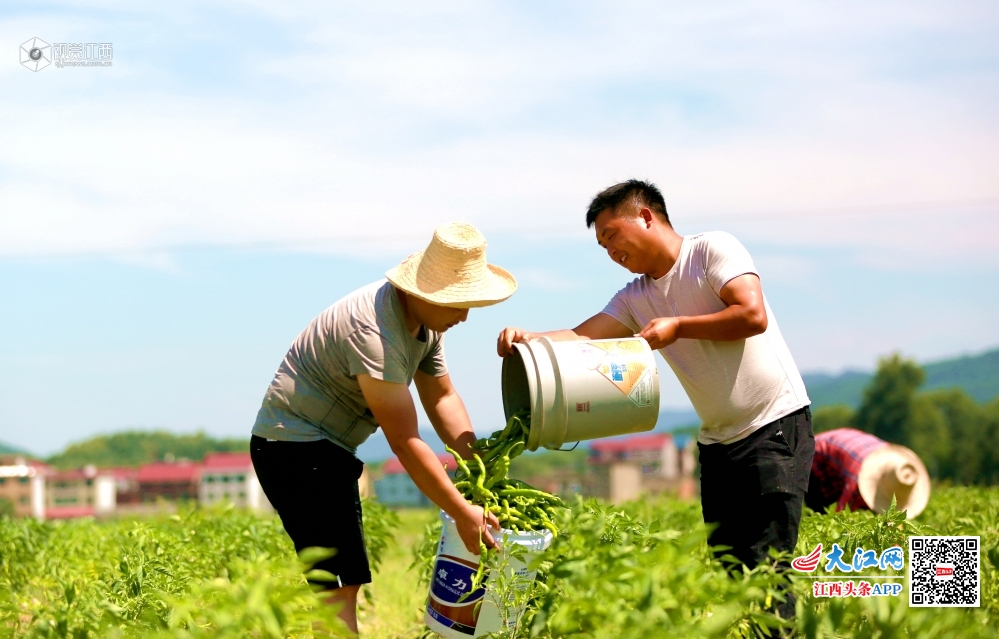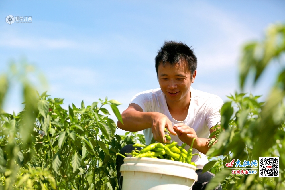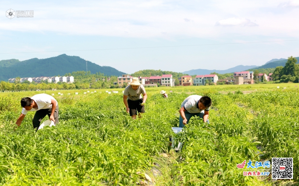 2020年6月16日,江西省吉安市吉水县双村镇丰凯农业辣椒产业基地一片欢声笑语,村民正在采摘有机辣椒。江西省吉安市吉水县双村镇在积极落实扶贫“六个一”工作的同时,通过与院士团队科技创新中心合作,在全镇6个村试验种植了30多个辣椒品种,推行辣椒种植试验示范,总面积达到297亩,在壮大村集体产业的同时,通过基地示范带动群众种植,助力贫困户增收致富。
