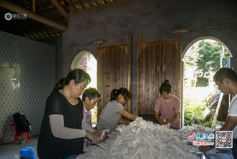 2020年6月16日,在江西省袁州区芦村镇五星村的扶贫产业基地里呈现一片繁忙的劳动场面。原来该村“两委”及驻村第一书记多次召开会议,研究部署今年的扶贫工作,带领群众走上致富之路。今年通过成立惠群种养合作社,走“农户+合作社”的模式,带领贫困户25户共69人加入合作社,从福建引进竹荪产业,投资39万余元,种植20余亩竹荪。近日,正式竹荪采摘季节,社员们每天早早到竹荪基地采摘。