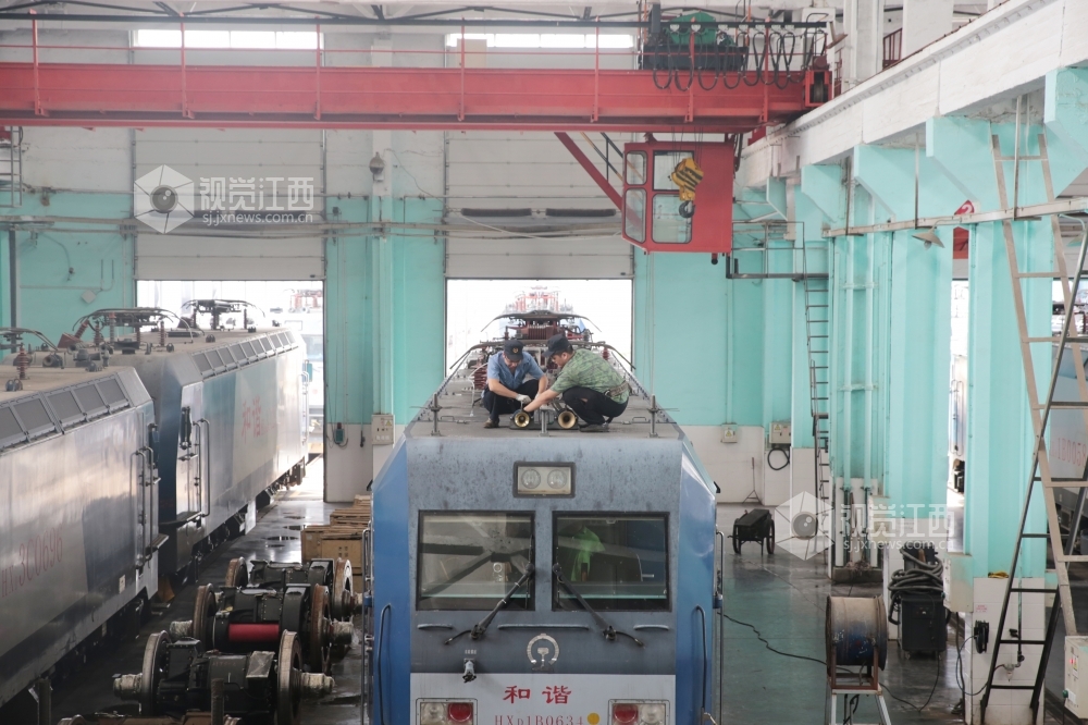 6月22日,为保障汛期列车行车安全,中国铁路南昌局集团有限公司向塘机务段以雨为令,坚持“安全第一、预防为主、综合治理”的原则,持续推进防洪管理规范化、作业标准化、检查整治常态化。该段整备车间专门针对电力机车制动机、车顶高压设备、机车瞭望玻璃、头灯、雨刷、风笛、撒砂器等汛期行车重点设备装置进行全方位检修,为机车穿上“防滑鞋”,确保机车“健康”上线。