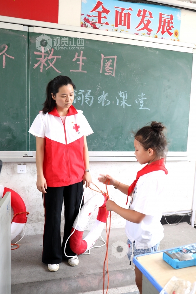 活动中,专业老师通过现场提问、趣味安全教育等形式多样的教学方式,深入浅出地讲解了水上安全基础知识,并手把手指导学生们遇到水上危险的处置措施、救生圈等救生器材使用方法等。学生们边学边练、踊跃参与,在寓教于乐的轻松活跃氛围中,学生们对防溺水安全知识有了更直观、更形象的认识。