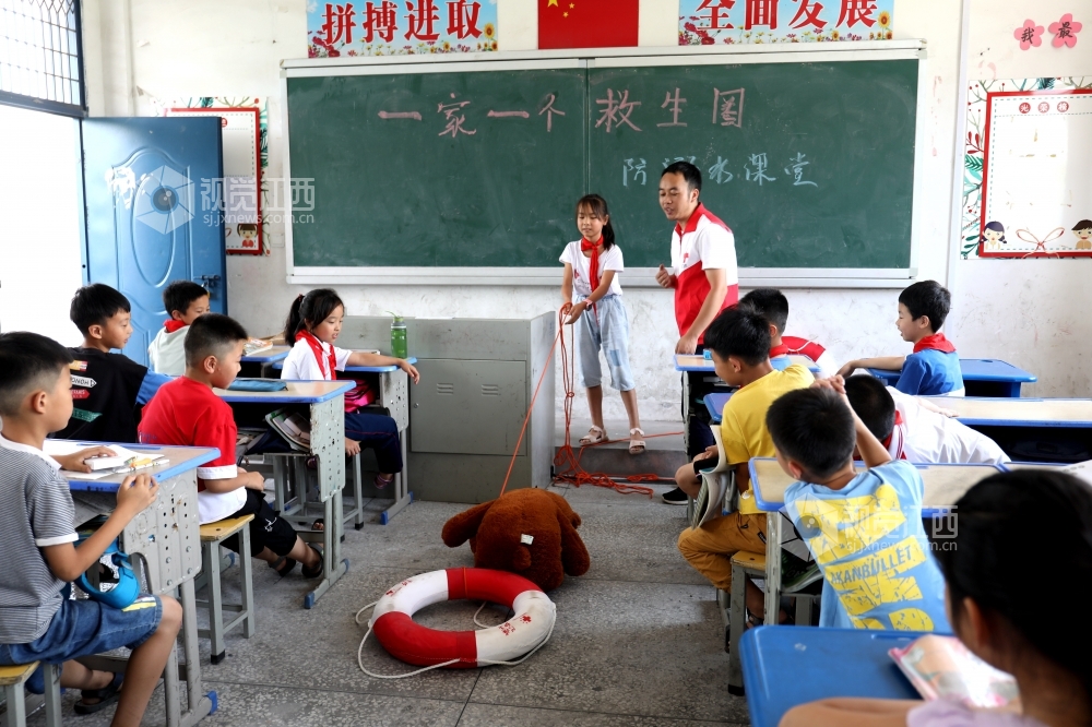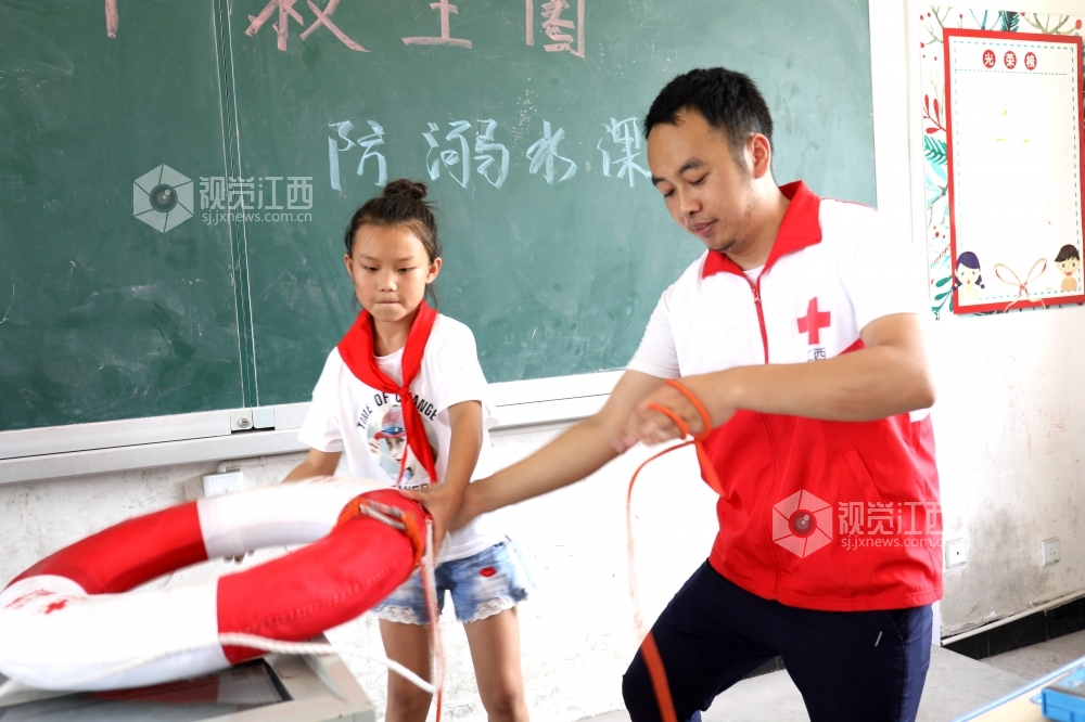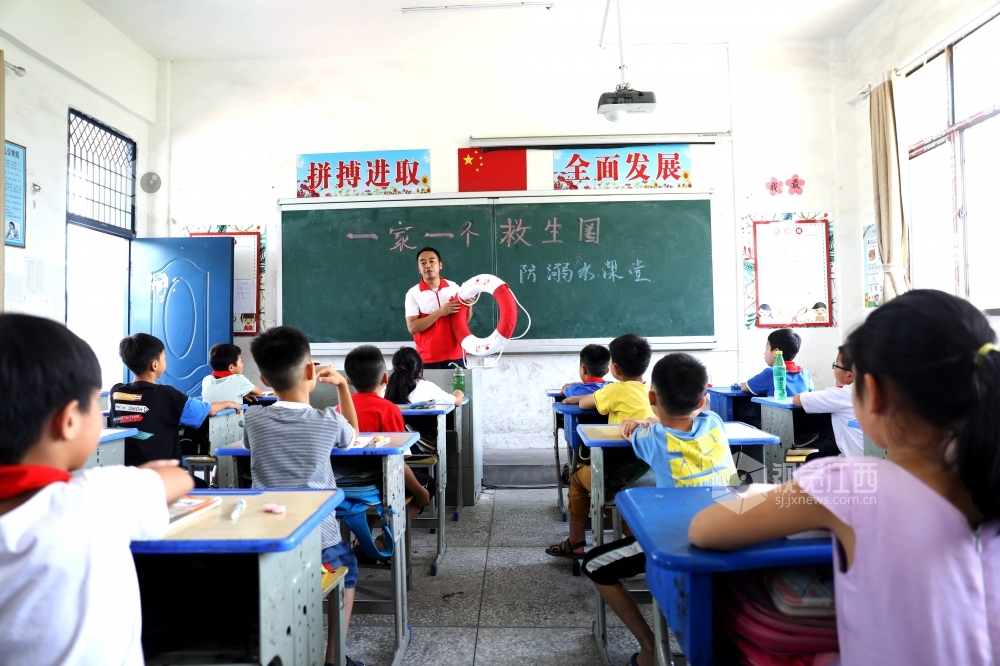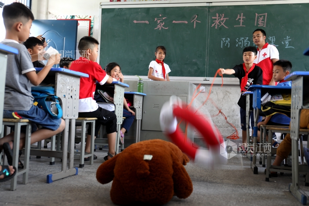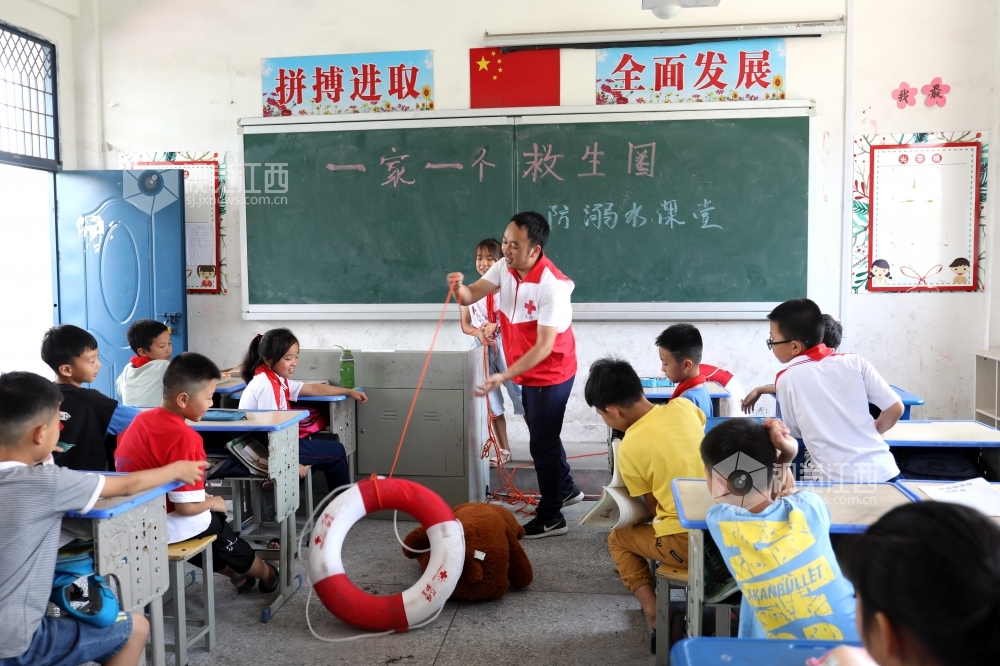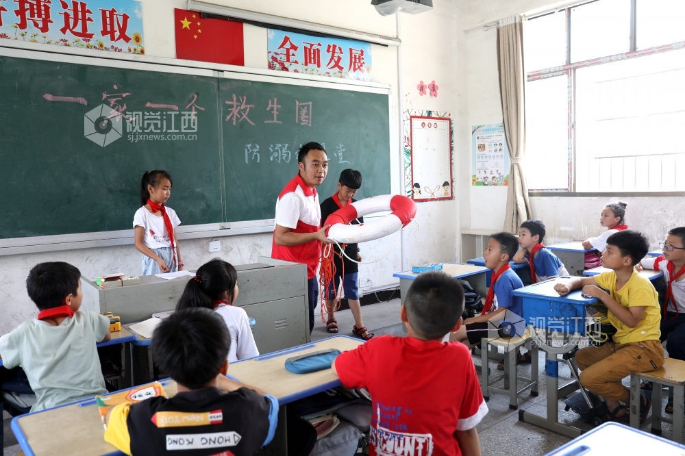 6月22日,江西省红十字会组织机关党员来到结对帮扶点分宜县洞村乡程家坊村开展“一家一个救生圈”防溺水宣传活动。针对夏天是中小学生易发生溺水事故高发时期,为避免溺水事件的发生,增强学生珍爱生命的意识和自护自救能力,当天上午,省红十字会专业教师在洞村乡中心小学为学生进行防溺水安全知识教育。