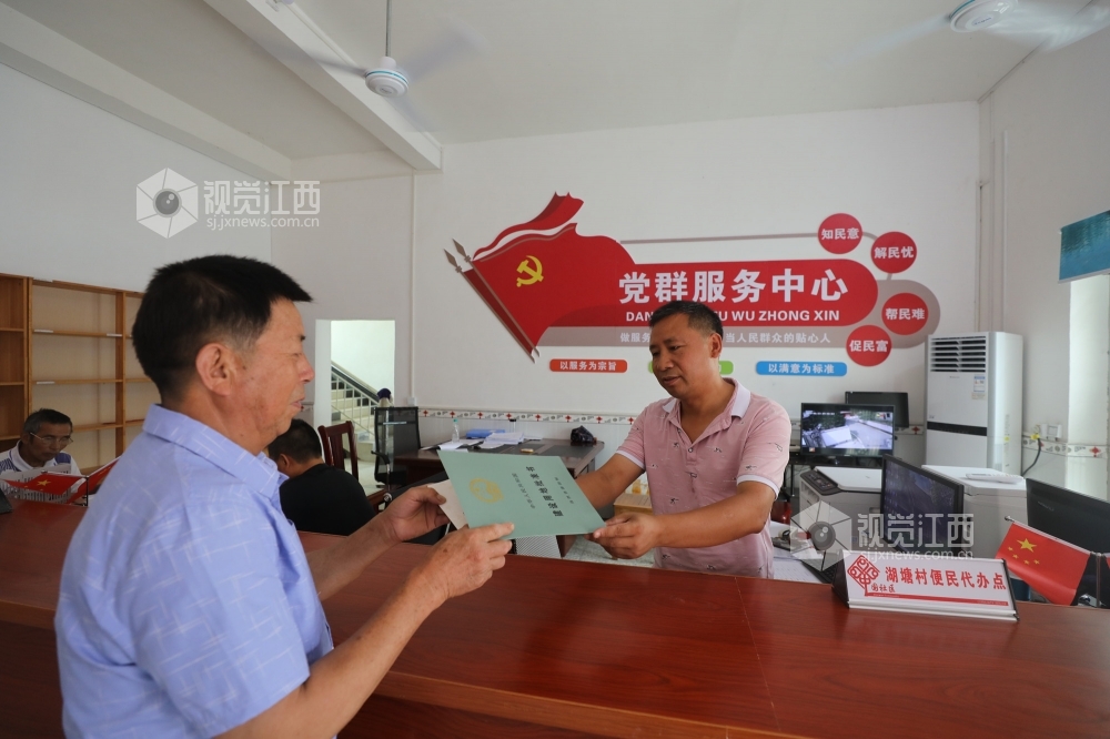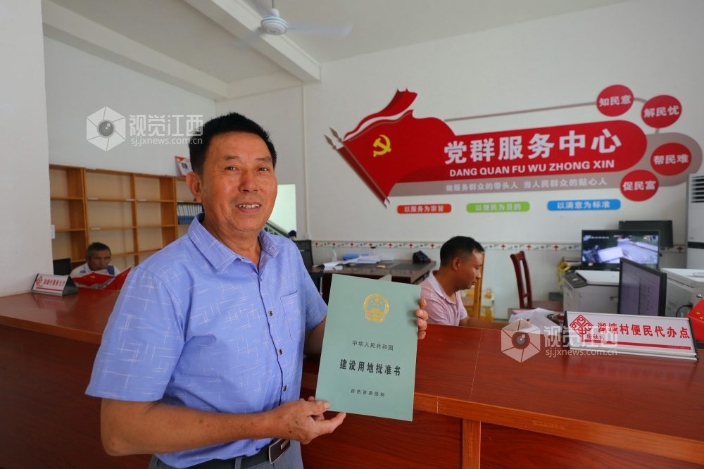 6月23日,江西省莲花县路口镇湖塘村村民刘建凡在村党群服务中心领取建设用地批准书。由于两个儿子先后结婚成家,原有的一栋房子不够住,刘建凡去年底通过村服务中心提交了有关材料,申请建一栋新房。