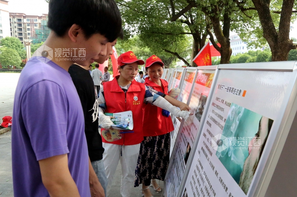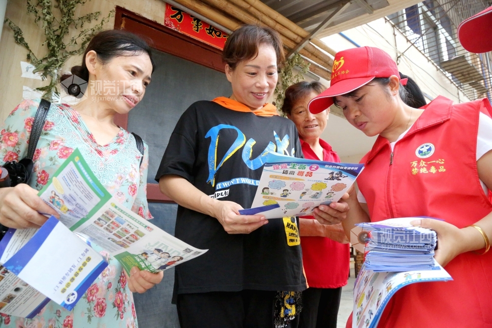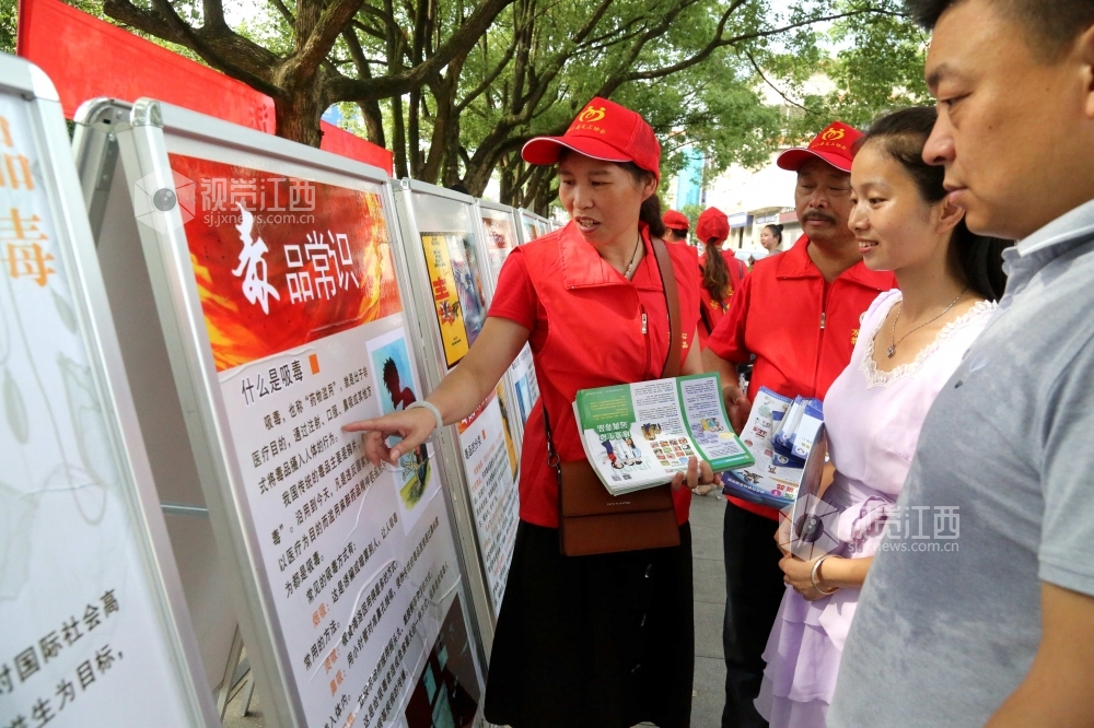 6月23日,江西省峡江县开展禁毒宣传进社区活动,禁毒志愿者分成三组前往各个社区对居民进行禁毒宣传活动,向居民宣传毒品的危害。