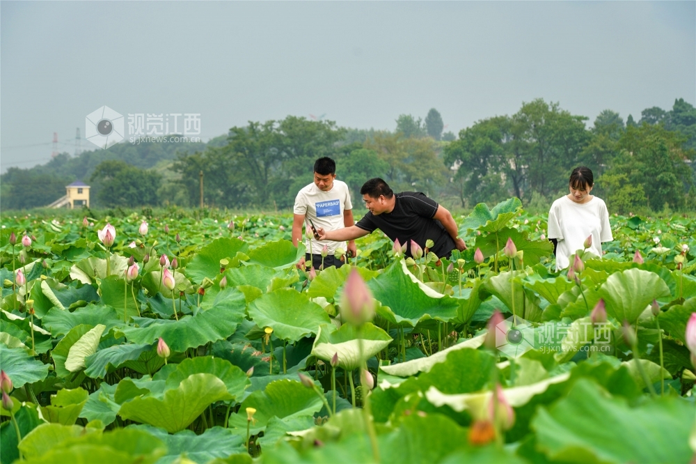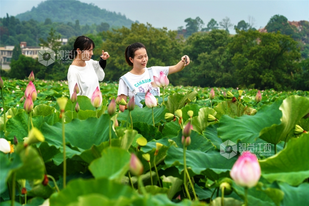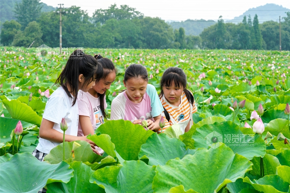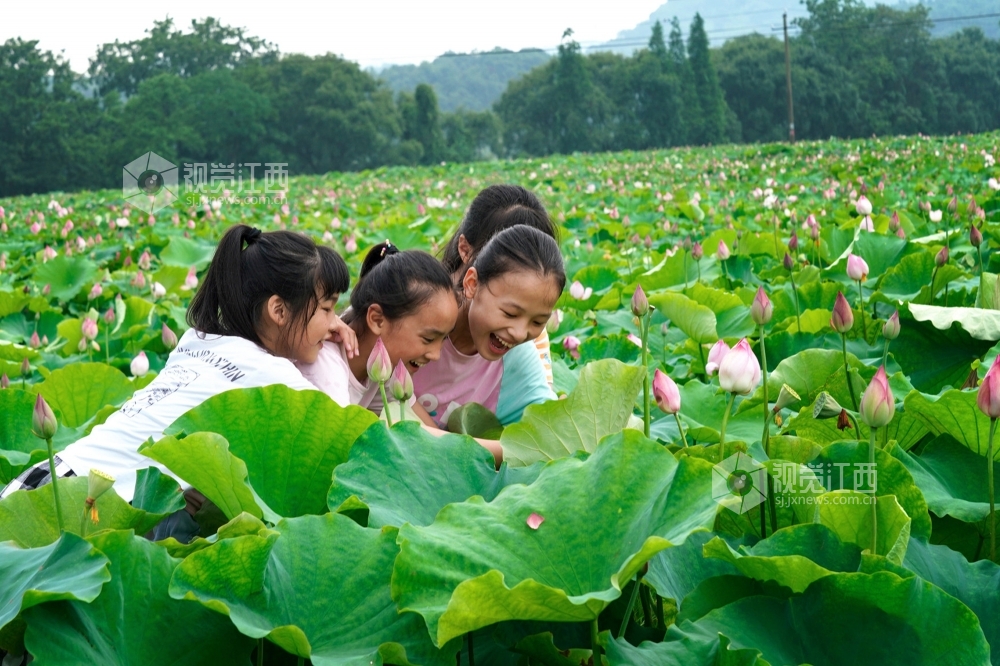 6月23日,端午前夕,江西省新余市欧里镇木村村的三百余亩荷花竞相开放,吸引众多游客前来观赏。