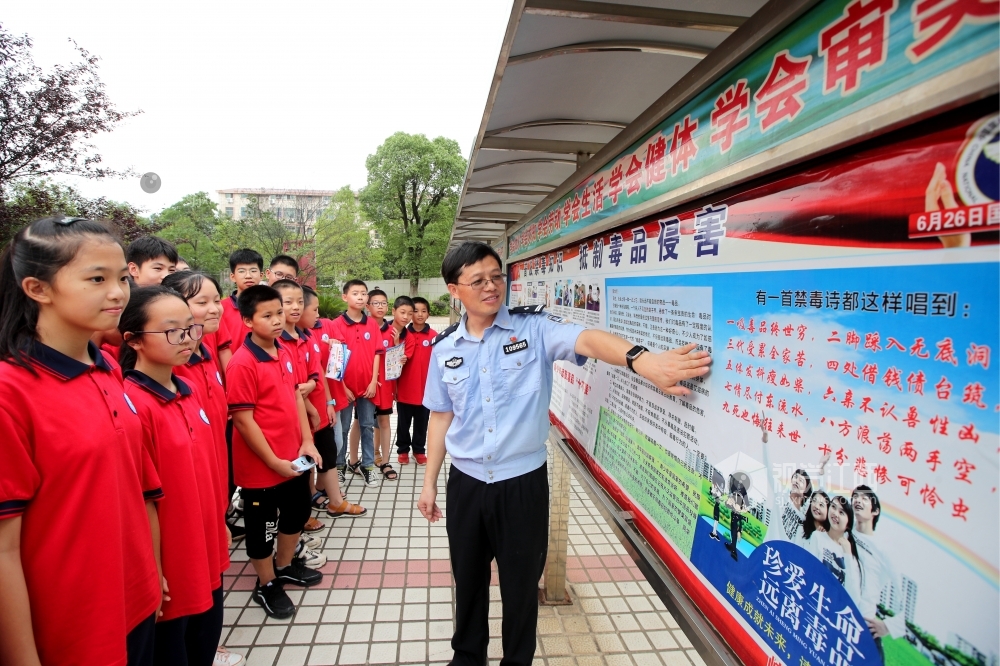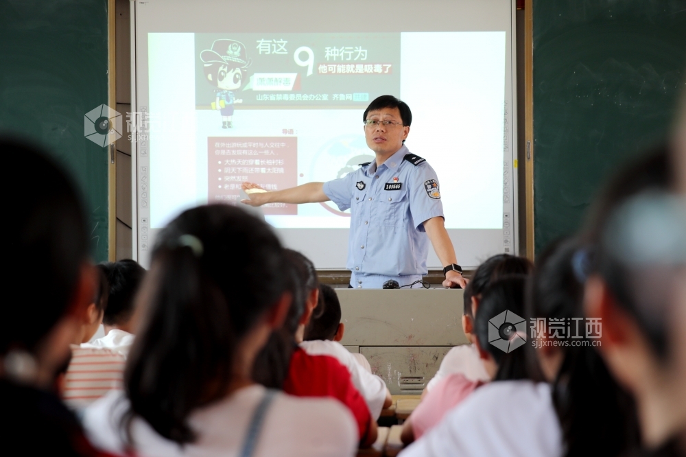 6月24日,在江西省吉安市峡江县实验中学,民警向学生讲解毒品危害。在6月26日国际禁毒日前夕,江西省吉安市峡江县公安局民警来到峡江县实验中学,向学生讲解禁毒知识、毒品危害,增强学生识毒、防毒、拒毒的意识和能力。