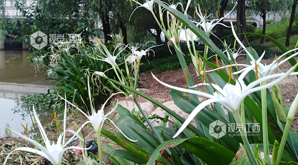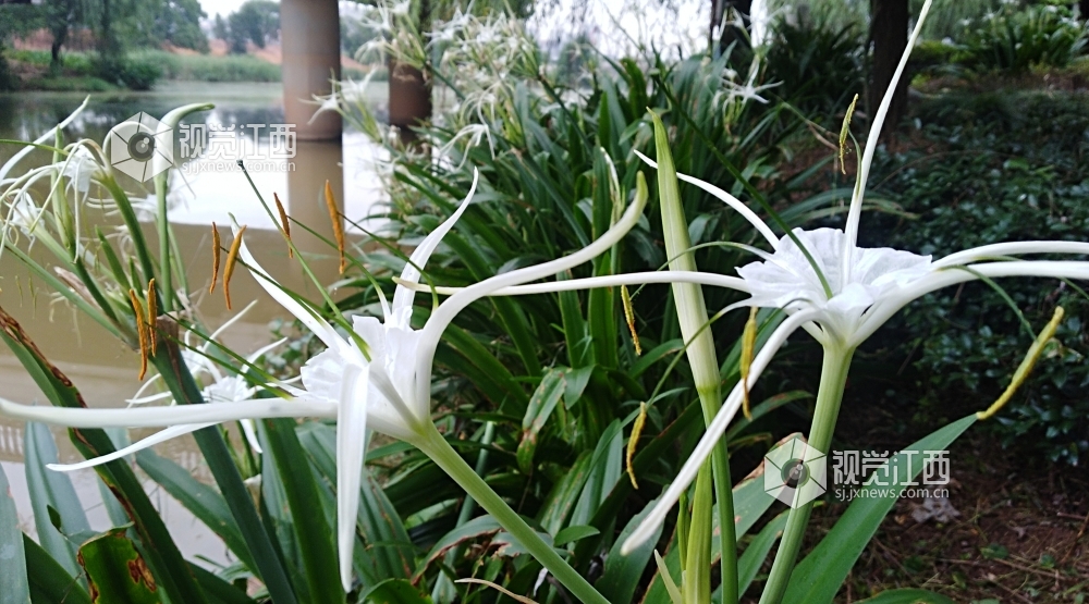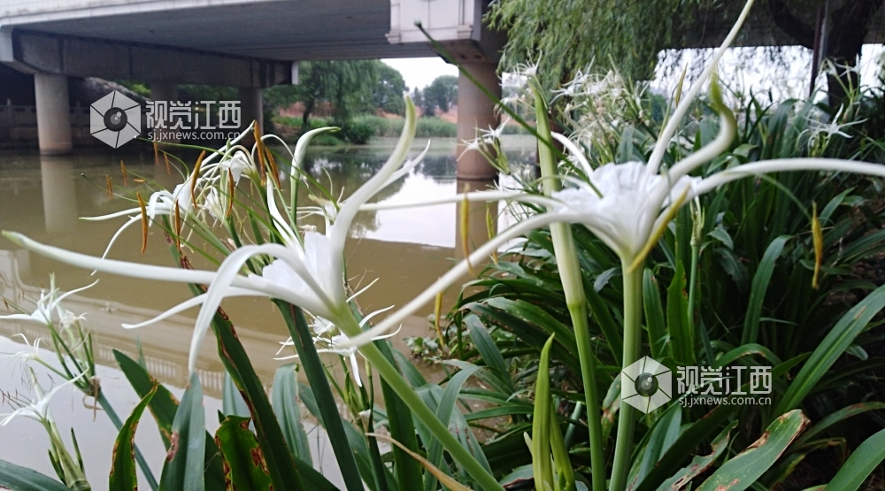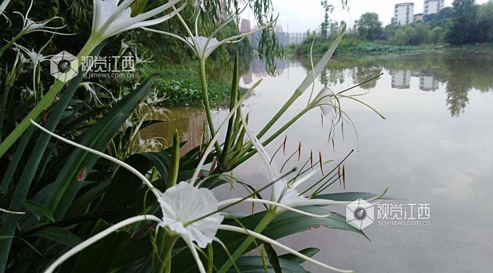 6月30日,江西省吉安市庐陵赣江国家湿地公园内的蜘蛛兰相继盛开,远看像镶嵌在湿地两岸的白色珍珠,近看亭亭玉立,洁白如玉,给人以美不胜收的感觉。
