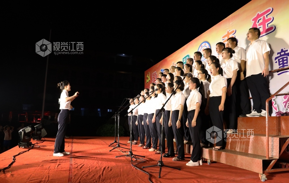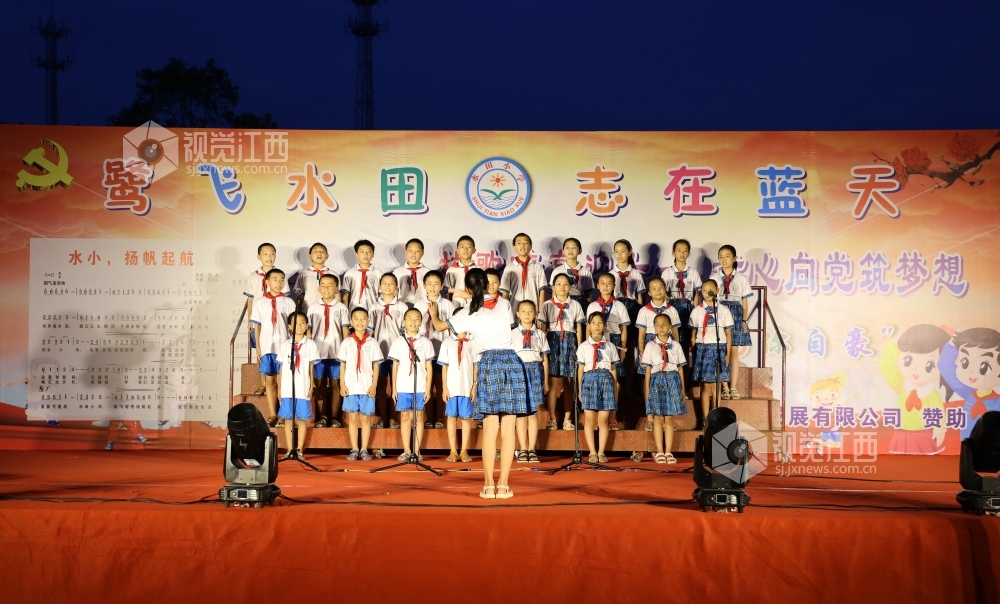 2020年6月30日,江西省吉安市吉水县水田乡水田小学师生自己搭建舞台,用一曲曲动人歌声颂党恩,喜迎建党99周年。
