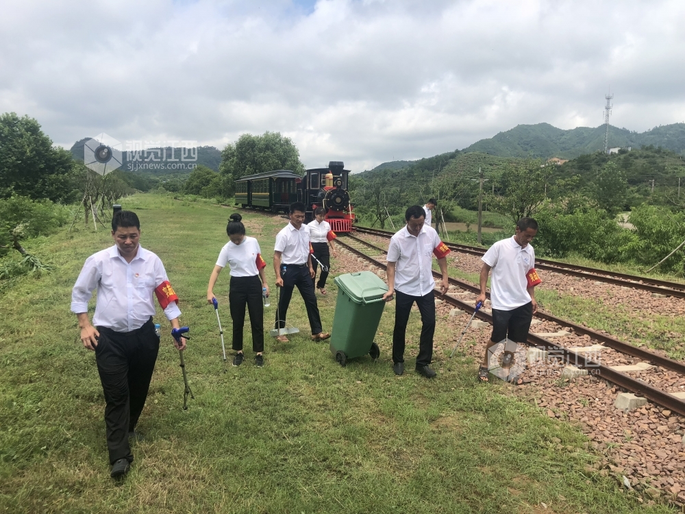 7月1日上午,江西省横峰县司铺乡组织入党积极分子、党员发展对象及预备党员十余人,到该乡刘家村火车小镇清洁卫生。