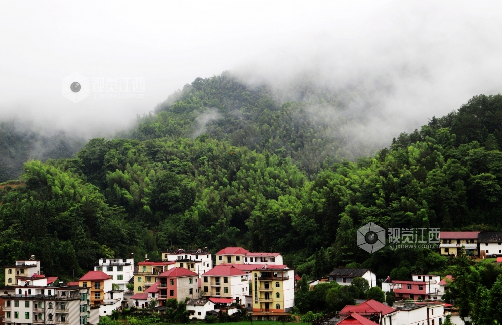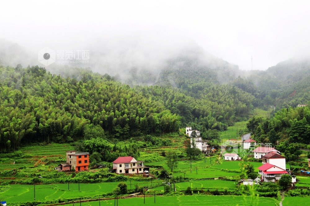 7月3日,安福县章庄乡白云村,一场阵雨过后,竹波荡漾,云烟漫溯。青山之间,层层梯田生机盎然,栋栋新居错落有致,仿佛画卷。白云村地处武功山北侧,曾经是省定贫困村,近年来,在党的扶贫政策的照耀下,该村大力实施美丽乡村建设乡级精品示范村点工程,因地制宜发展光伏、优质水稻、木竹深加工、食用菌种植等富民产业,全村呈现村美民富的新气象。