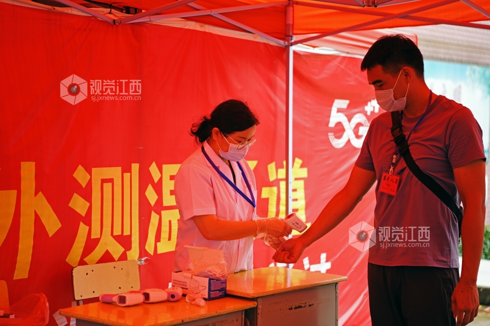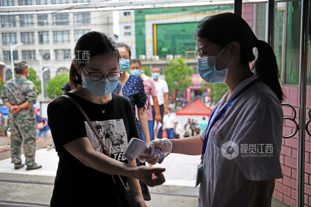 2020年7月3日,在江西省上饶市铅山一中高考考点,该县组织老师正在进行高考模拟演练。为提升考点应对疫情防控能力,确保2020年高考安全顺利,铅山县开展高考考试期间考点疫情防控应急处置演练,在演练过程中,对考生进考点、考试过程等突发情况应急处置程序、隔离考场启用流程等真实场景进行模拟,按照疫情处置的工作流程,精心组织开展了高考防控应急模拟演练,提高疫情防控工作人员应对新冠肺炎的防范意识和应急水平,全面检验应急指挥和组织协调能力,为安全高考做好充分的准备。