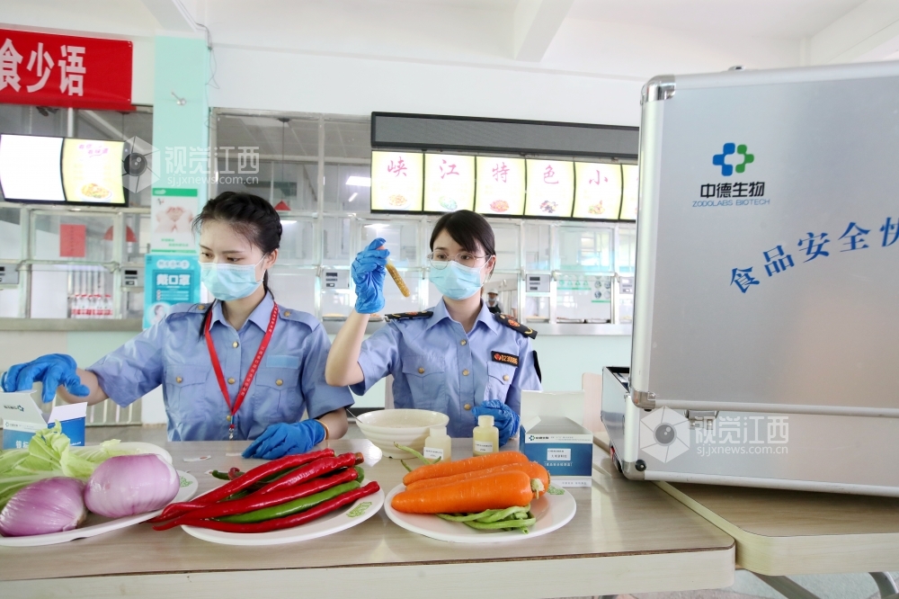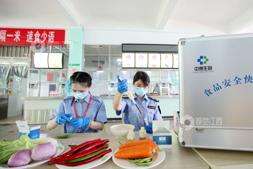 7月6日,高考前夕,江西省吉安市峡江县市场监管、教育、卫健等部门开展联合执法,对学校食堂和校园周边的商铺、餐馆进行高频率抽查,同时清理无证摊点,确保考生的食品安全。