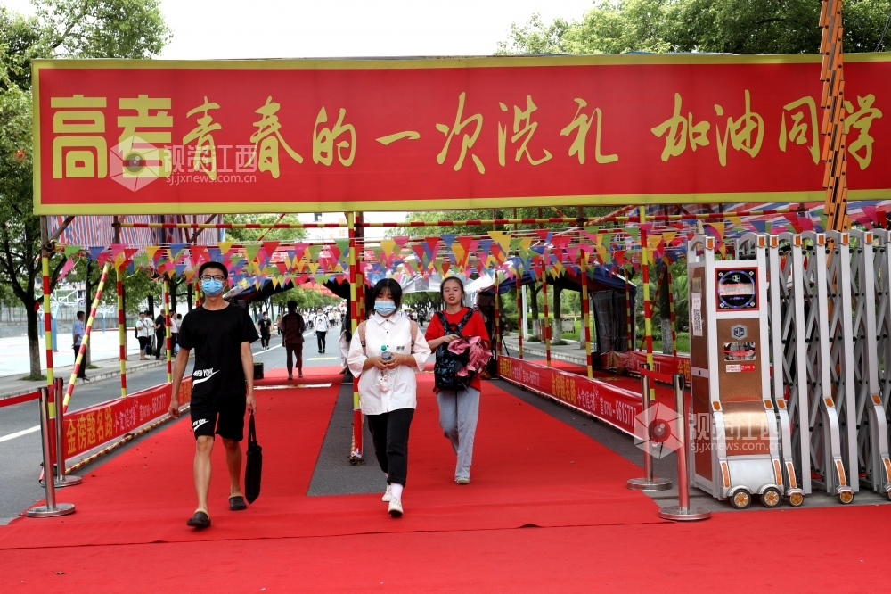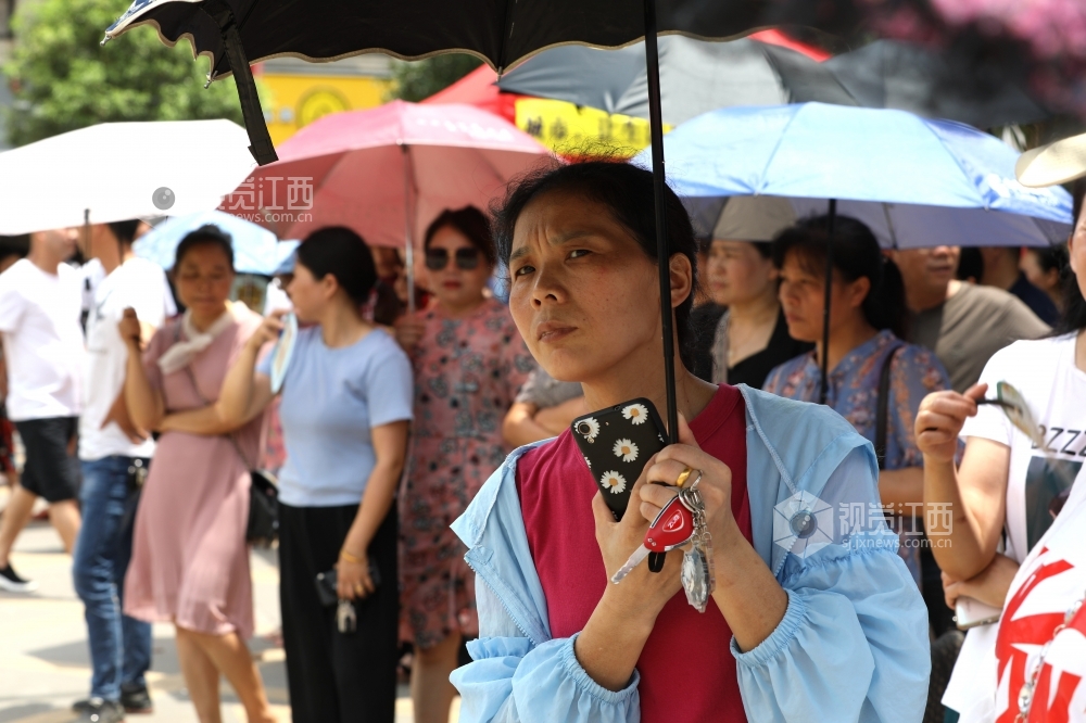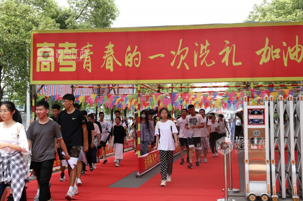 7月7日11时30分,江西高考首场科目语文考试结束,分宜中学考点2000余名考生陆续走出考场,不少学生表情轻松。尽管天气炎热,仍有不少家长在早晨送完孩子进考场后坚守在学校周围,在考试临近结束时,家长陆续向大门口靠拢翘首以盼。