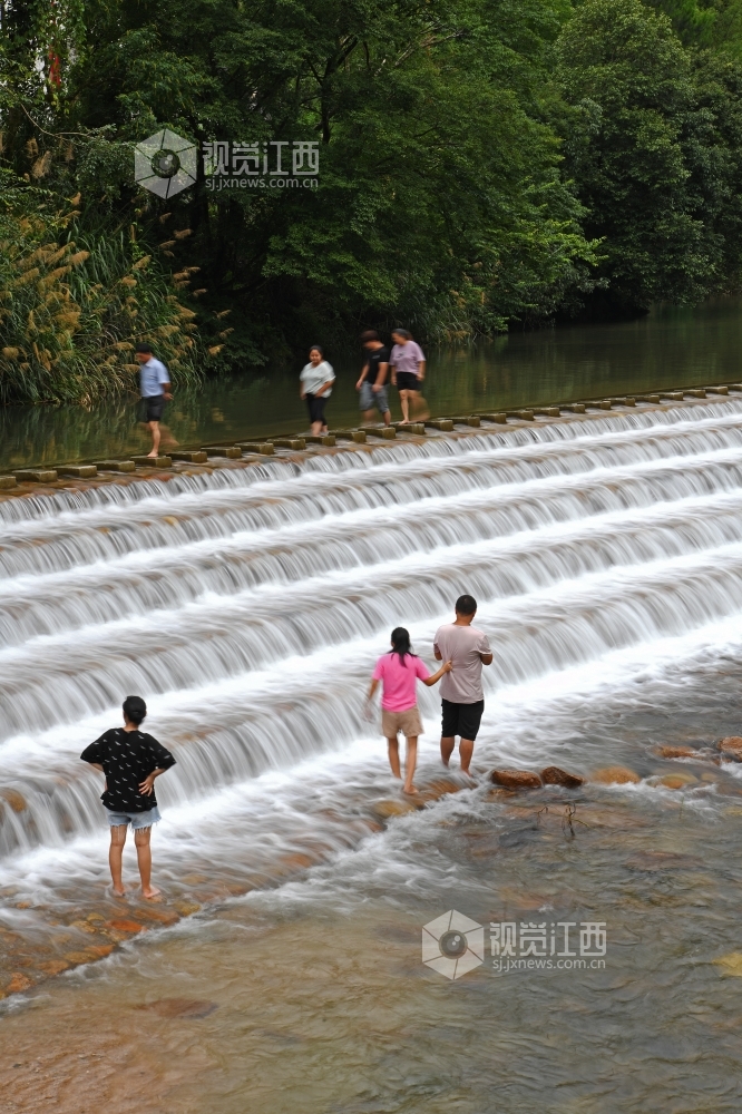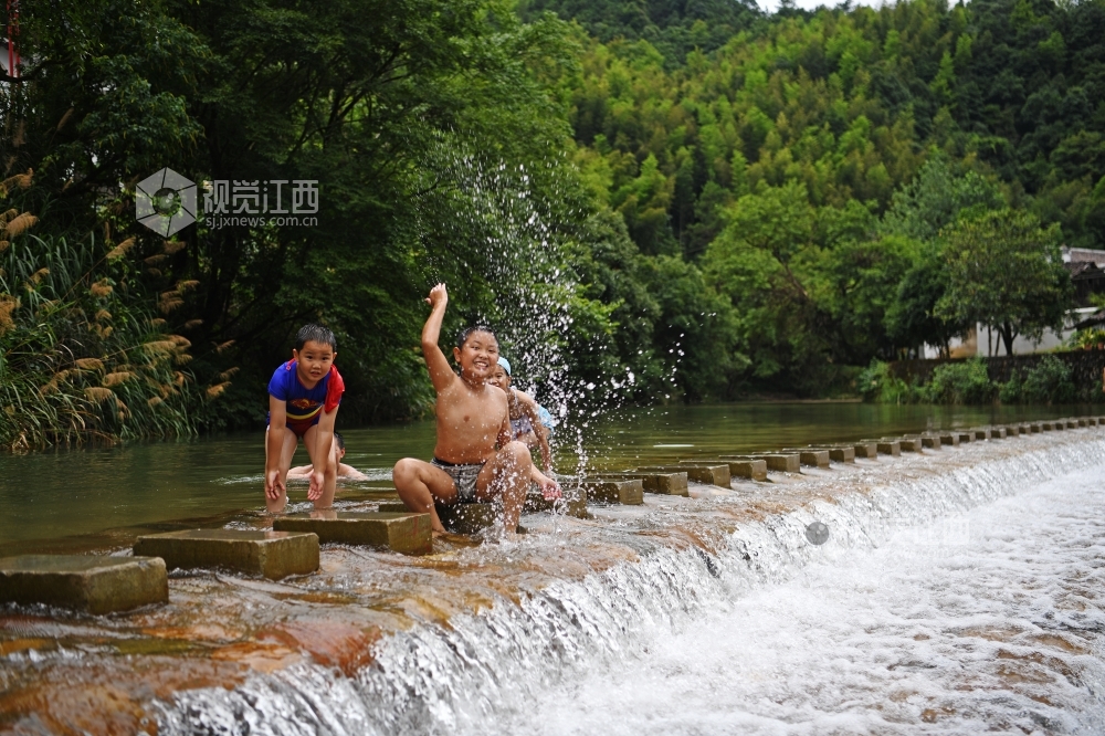 2020年7月5日,在江西省上饶市铅山县太源畲族乡水美村,游客在河里戏水。近年来,铅山县委、县政府高度重视生态环境保护工作,铁心硬手抓环保问题整改,科学有效抓污染防治,在工业污水处理、农村生活污水处理设施建设等方面成效明显。严格的生态保护和生态修复工程,让铅山走出了保护、防治、修复齐步的发展路子,不断开启产业转型升级的崭新征程。2109年全年接待游客人次增长7.6%,实现旅游综合收入增长8.5%。