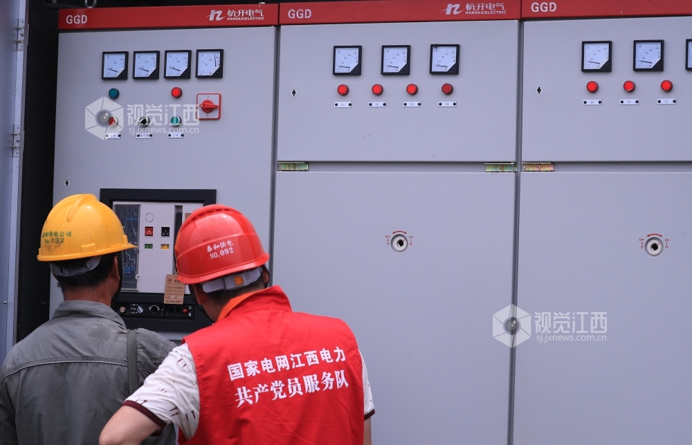 7月8日,在江西省吉安市泰和县万合镇光伏扶贫发电站,电力工人正在检修维护光伏发电设备设施,确保电站安全平稳运行。