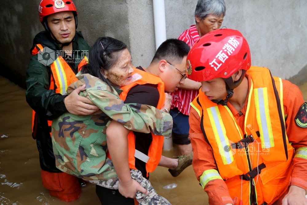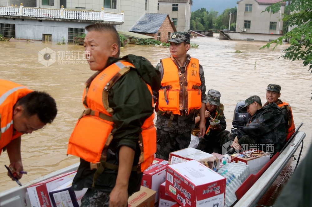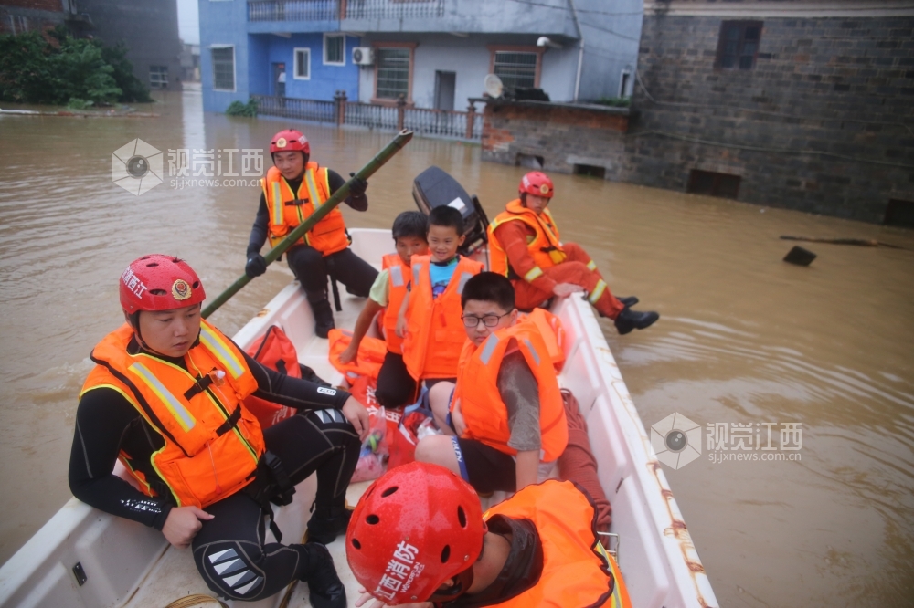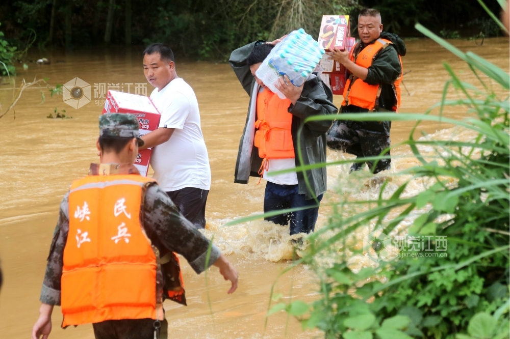 7月9日至10日,江西省峡江县遭遇暴雨天气,多地出现洪涝灾害。当地干部群众和武装、消防救援人员迅速组织开展救援,及时转移被困群众、运送救援物资。