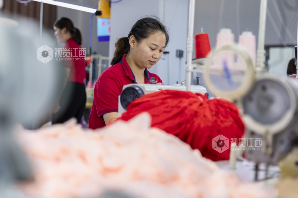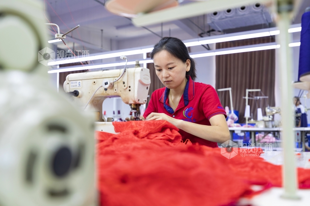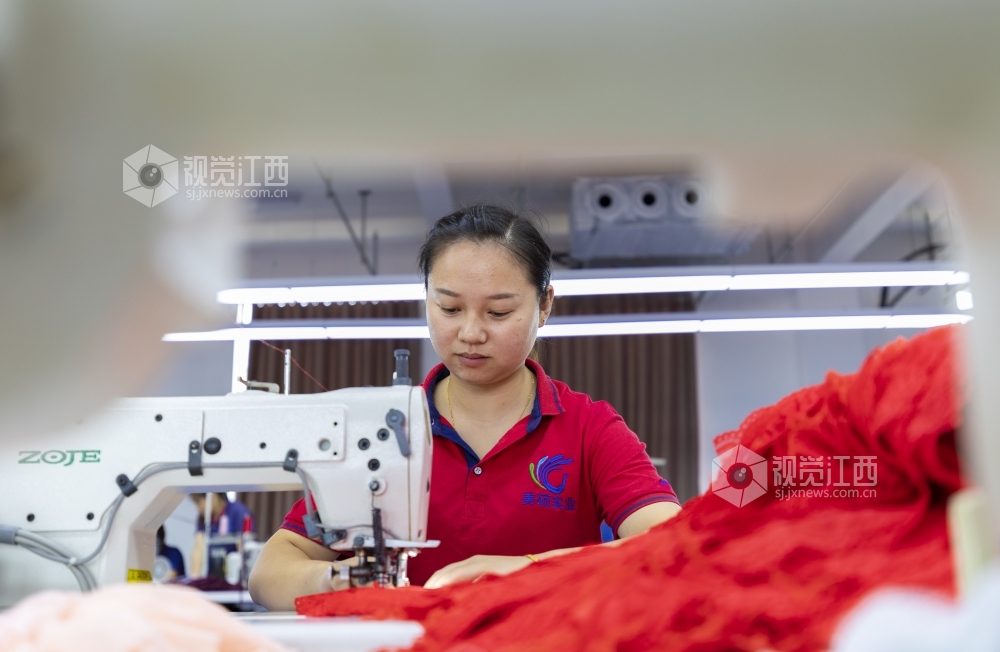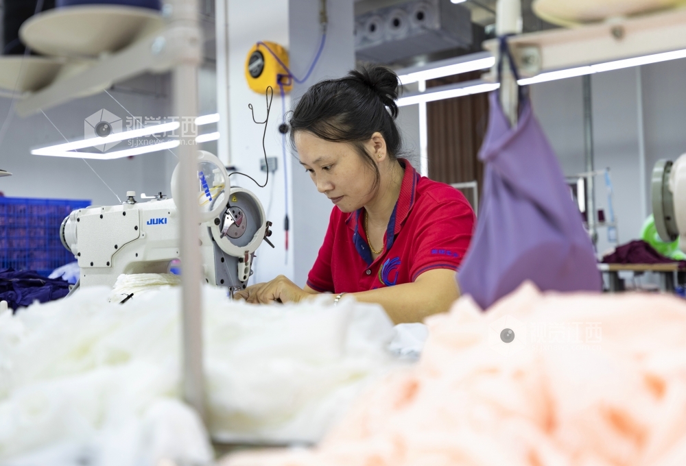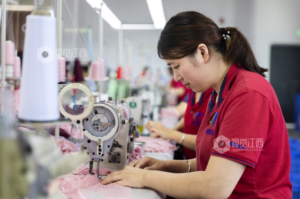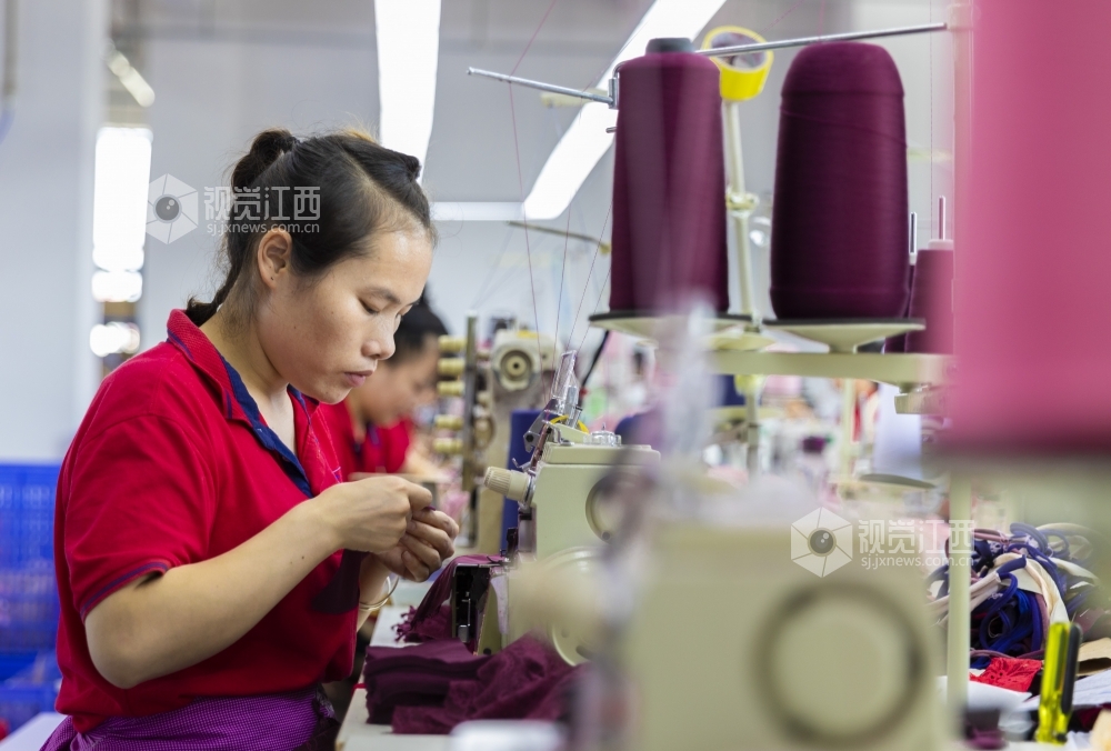 2020年7月13日,江西省吉安市泰和县美硕实业有限公司的员工正在加工生产内衣,准备销往俄罗斯、波兰等国家。