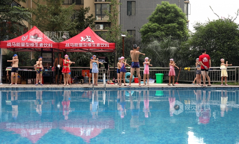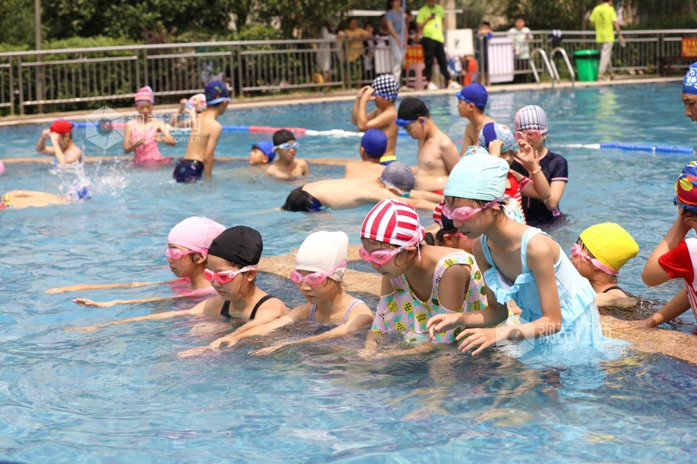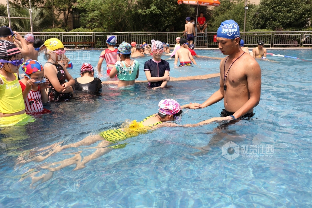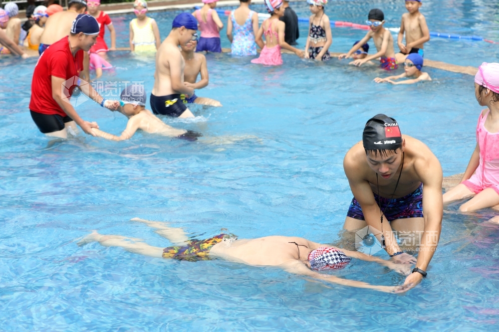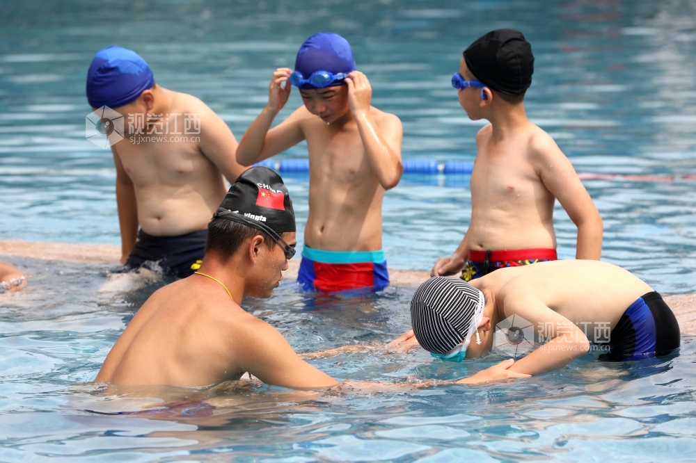 7月15日,江西省分宜县第三中心小学四年级学生在游泳馆教练指导下开心学习游泳。暑期到来,该县实施“水花行动”,对全县城乡小学四年级适宜游泳的学生开展免费游泳技能培训,手把手教学生游泳技术要领,提高学生水中自救能力,减少溺水事件发生。